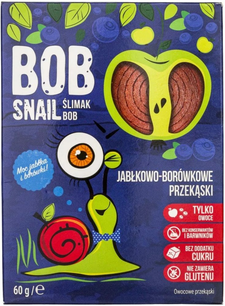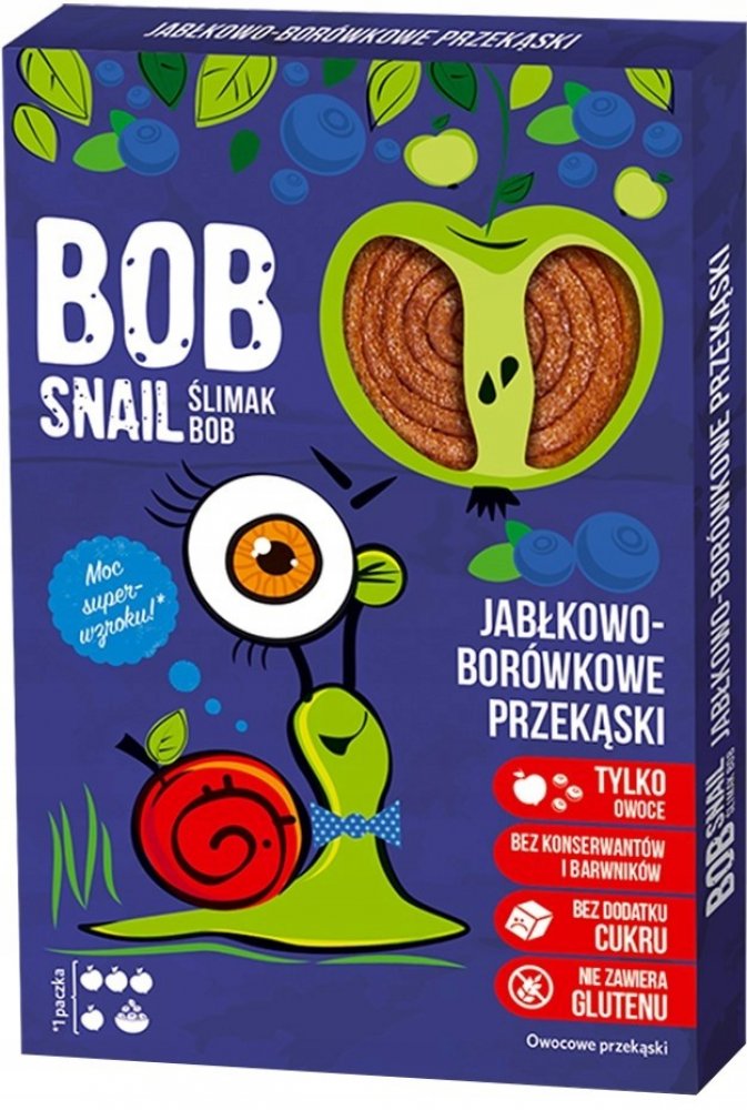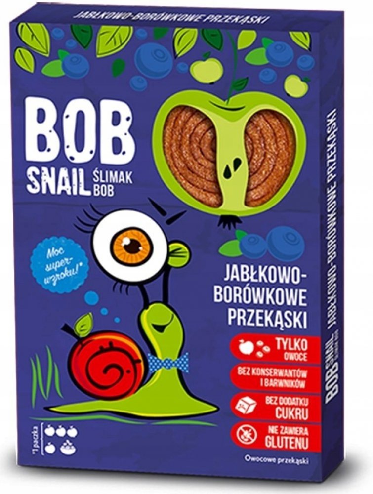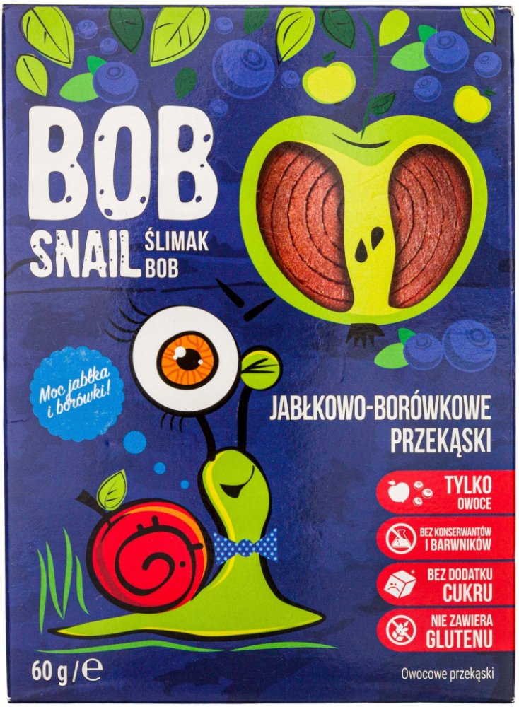 Bob Snail s jsou přírodní ovocné svačinky od výrobce Eco-Snack. Jsou vyrobeny z ovoce a ničeho jiného! Ve výrobcích Bob Snail nenajdete žádné konzervační látky, žádná barviva ani přidaný cukr. Bob Snail výrobky jsou vhodné pro vegany. Jablečná a borůvková svačinka se skládá ze 100% jablek a borůvek. Výživová hodnota Velikost balení: 30 g Složení v 100 g Energetická hodnota 561 kJ/ 132 kcal Tuk z toho: Nasycené mastné kyseliny 1 g 0, 17 g Sacharidy z toho: cukry* 29, 6 g 17, 6 g Bílkoviny 1, 2 g Sůl** 0, 02 g Vláknina 4, 1 g Složení: Jablka 80%, borůvky 20%. Svačinka Jablka a borůvky se skládá ze 100 % z jablek a borůvek. Jablka jsou zdrojem cenné vlákniny, která zlepšuje funkci trávicího traktu. Stimuluje střevní peristaltiku. Kromě toho, jablka obsahují kyselinu ursolovou, minerální látky (draslík, hořčík, železo, křemík a vápník), kvercetin, a semena obsahují vitamin B17. Borůvky vděčí za svou modrou barvu antokyanům, pigmentům s antioxidačními vlastnostmi. Ve svém složení obsahují organické kyseliny, třísloviny, flavonoidy.