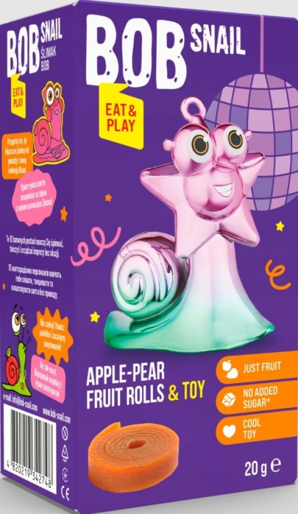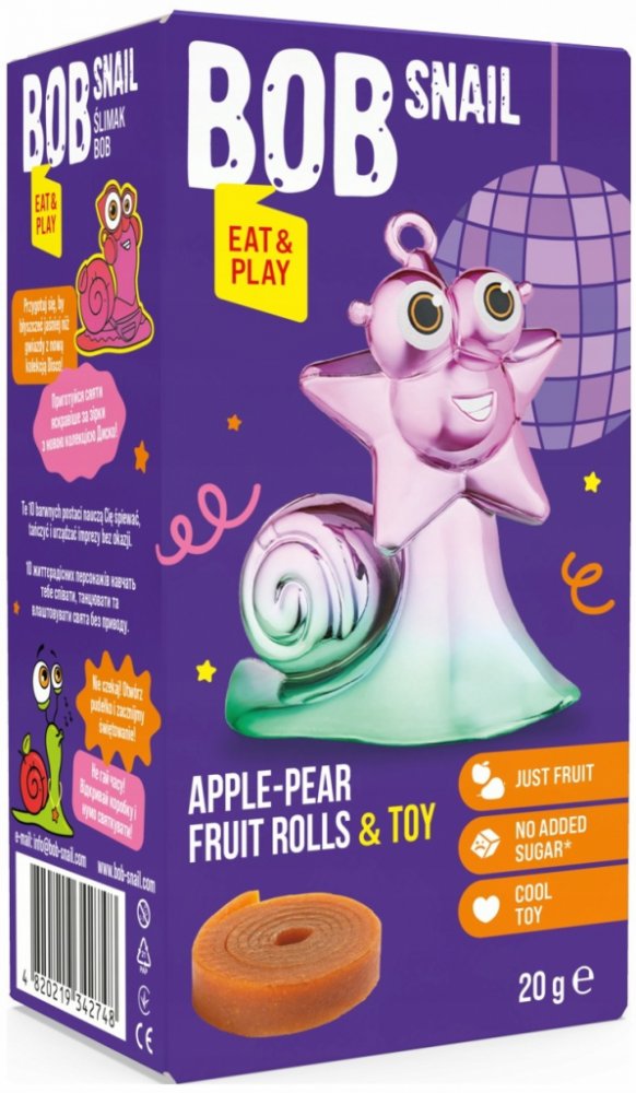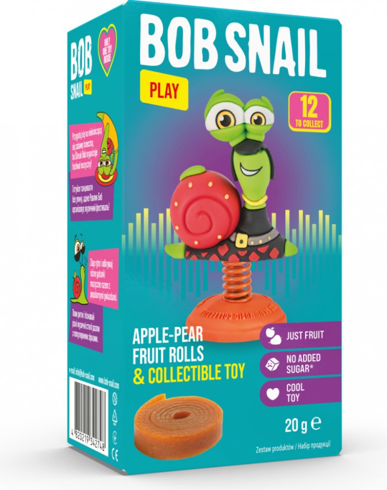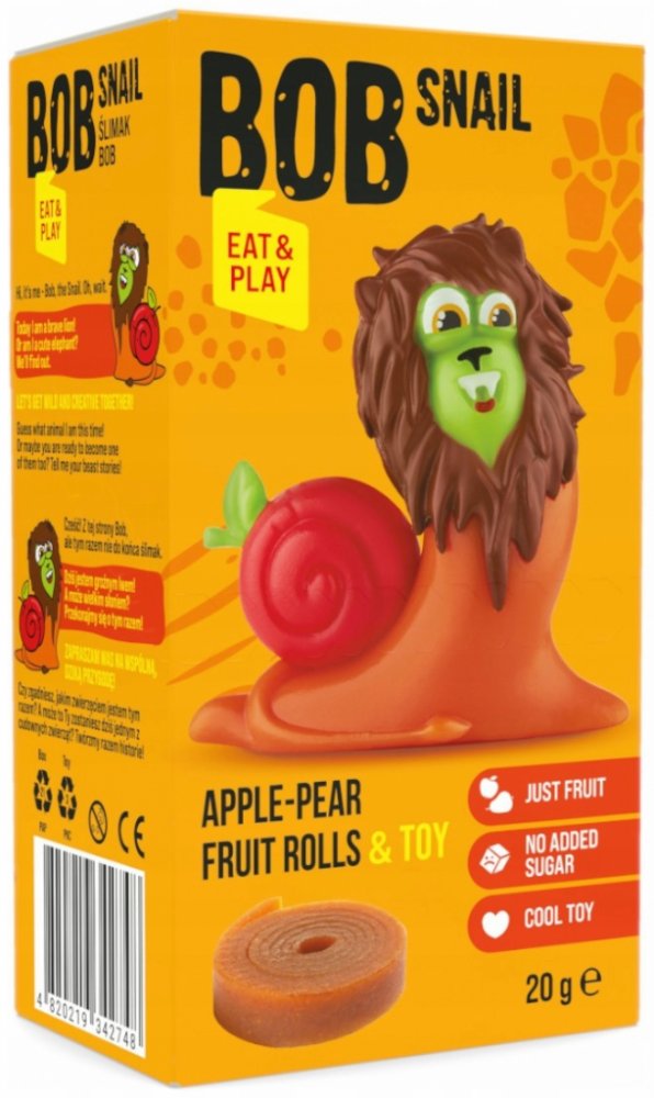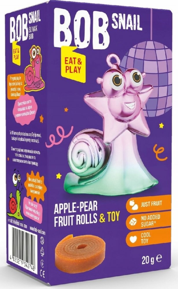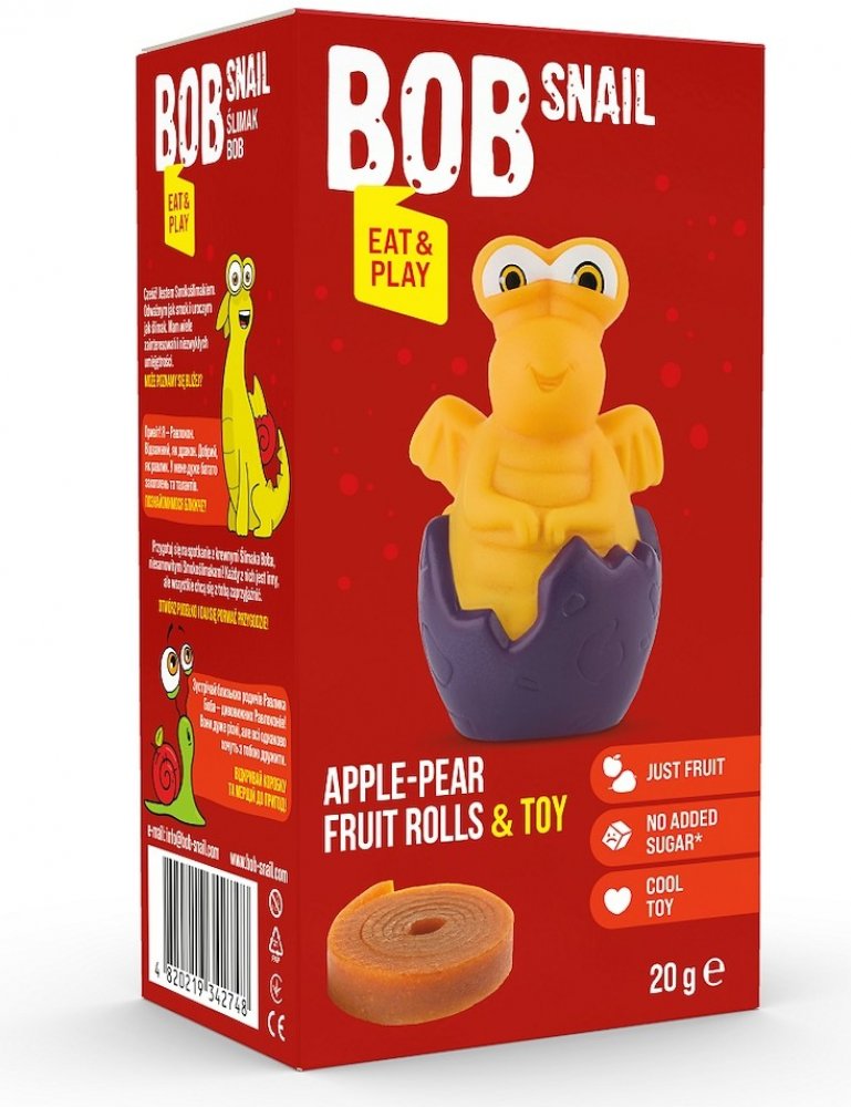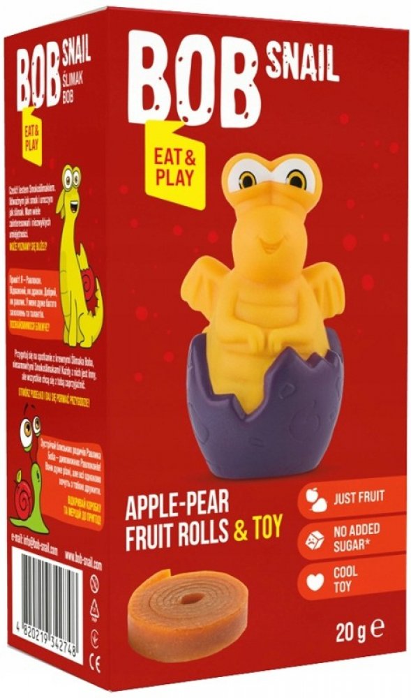 Bob Snail je ovocná přesnídávka složená výhradně z jablek a hrušek. Bez přidaného cukru. Vhodné pro vegany. Balení obsahuje dvě přesnídávky a hračku. Bob Snail jablečné a hruškové přesnídávky jsou přírodní ovocné přesnídávky. Skládají se ze 100% z jablek a hrušek. Balení obsahuje dva snacky a hračku! Jablka jsou zdrojem cenné vlákniny, , která zlepšuje funkci trávicího traktu. Stimulují střevní pe...