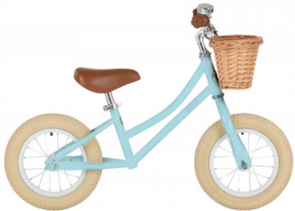 Odrážedla se vyznačují lesklým lakem na povrchu, béžovo-krémovými plášti kol a opravdu roztomilým proutěným košíkem.