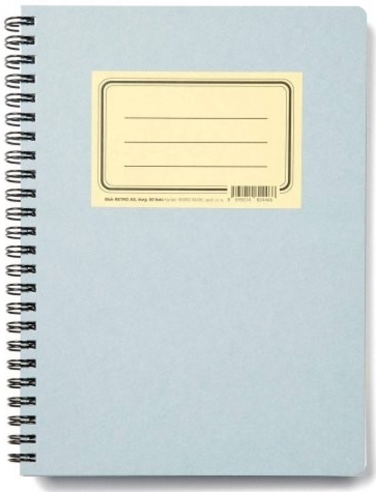 Retro poznámkové bloky značky BOBO. Pevné kašírované desky o tloušťce 1,5 mm chrání 50 listů. Kartonové desky mají zakulacené rohy. Obálka má šedomodrou barvu. Gramáž papíru je vysoká, 80g/m2.