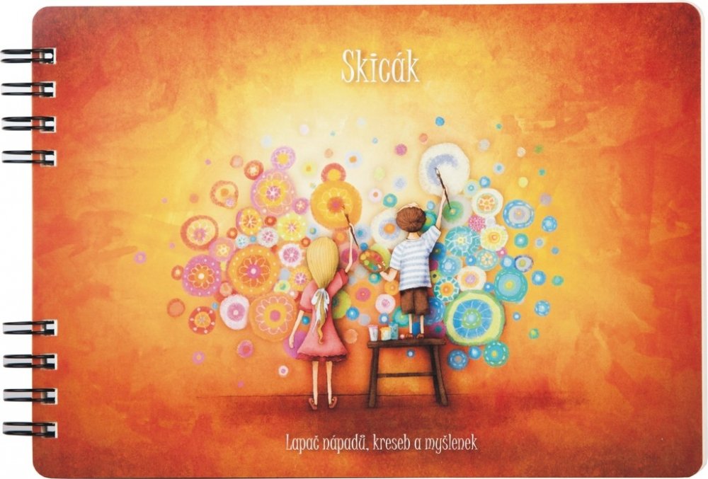Praktický skicák formátu B5 s motivem Tvořivost. Inspiruje vás k lapání nápadů, které poletují všude kolem. Příjemný nelinkovaný papír v krémové barvě (tzv. Holmen book) vám zpříjemní kreslení. Speciální knižní papír o vysoké gramáži 80g/m2 vám také zajistí kvalitní kreslení. Desky skicáku jsou z tvrdého kartonu. Pomocí boční kovové vazby TWIN WIRE můžete listy ve skicáku snadno otáčet až o 360° bez vzájemného posunutí stránek. Výrobek zůstává otevřený na zvolené stránce a samovolně se nezavírá. Samozřejmostí je snadné odtržení listu.