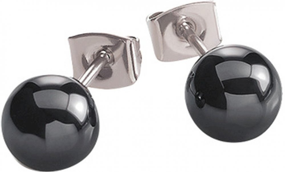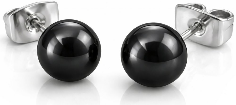 Náušnice kulička. Zapínání mají z titanu a kuličky z černé keramiky. Titan je šedý až stříbřitě bílý, lehký a tvrdý kov. Vyznačuje se mimořádnou chemickou stálostí (je zcela netečný k působení vody a atmosférických plynů a odolává působení většiny běžných minerálních kyselin i roztoků alkalických hydroxidů). Titan je ANTIALERGICKÝ a proto je také oblíbený ve šperkařství a hodinářství.