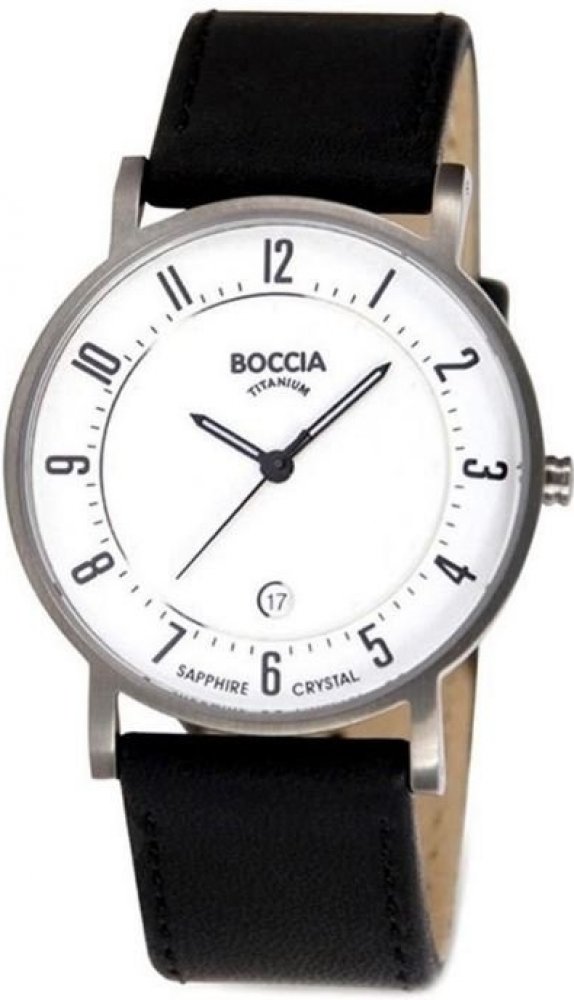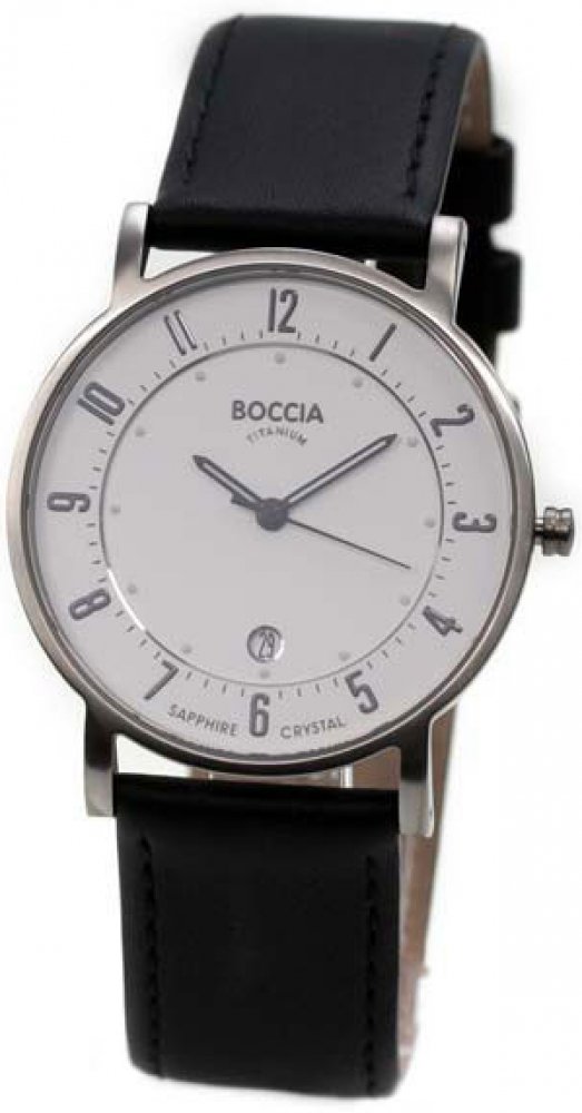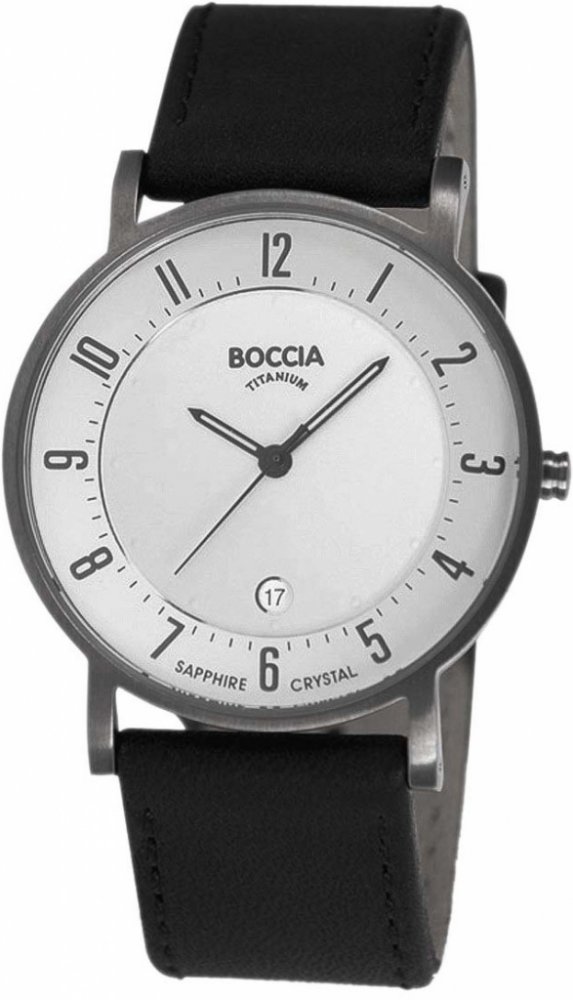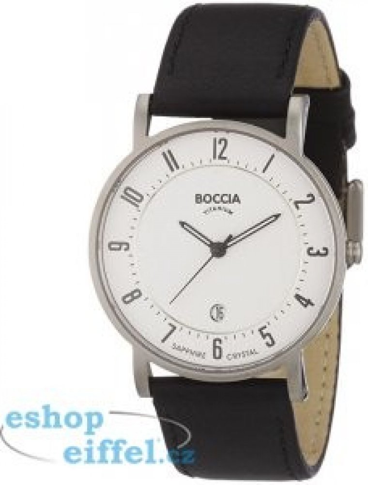 Pánské hodinky Boccia Titanium 3533-03:Pánské módní hodinky od německé značky Boccia Titanium již svým názvem prozrazují materiál, ze kterého jsou vyrobeny. Vysoce kvalitní antialergenní titan se vyznačuje svou lehkostí a tvrdostí a svému uživateli poskytuje příjemný vzhled. Hodinky se perfektně hodí na běžné nošení, pracovní schůzky či večerní setkání s přáteli, vždy budou vkusným doplňkem.Pouzdro hezky doplňuje černý kožený pásek. Bílý ciferník je kryt velice odolným safírovým sklíčkem a čas ukazují ručičky s luminiscenčními prvky. Nechybí vteřinová ručička a datumovka na šesté hodině. Chod hodinek je zajištěn klasickým quartzovým pohonem. Hodinky jsou vodotěsné, a tak je můžete bez omezení využívat po celý rok bez obav z jakéhokoli prostředí. Představují skvělý dárek, který potěší každého muže.