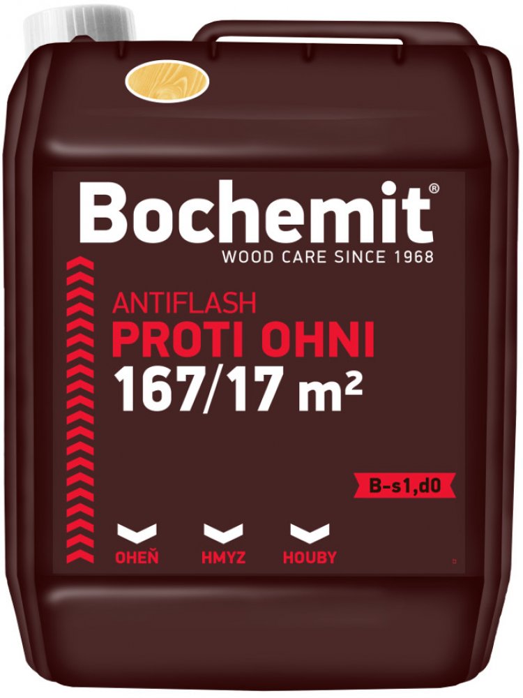 Koncentrovaný vodou ředitelný fungicidní a insekticidní přípravek na dřevo snižující hořlavost.