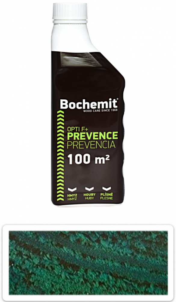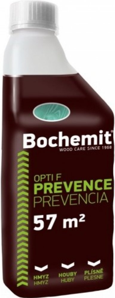 Bochemit Opti F + je koncentrovaný kapalný fungicidní a insekticidní přípravek pro dlouhodobou preventivní ochranu dřeva proti plísním, dřevokaznému hmyzu. Vhodný pro ochranu dřeva v interiéru (střešní konstrukce, podlahy) i exteriéru (střešní podbití, pergoly, ploty). Výrobek po aplikaci vsakuje do dřeva, na povrchu ošetřeného dřeva netvoří vrstvu, ošetřené dřevo nezapáchá. Bezbarvá varianta nezpůsobuje žloutnutí dřeva. Při trvalém zabudování dřeva v exteriéru (třída použití 3) je nutno ošetřené dřevo následně překrýt vhodným krycím nátěrem (např. Bochemit® Estetik)