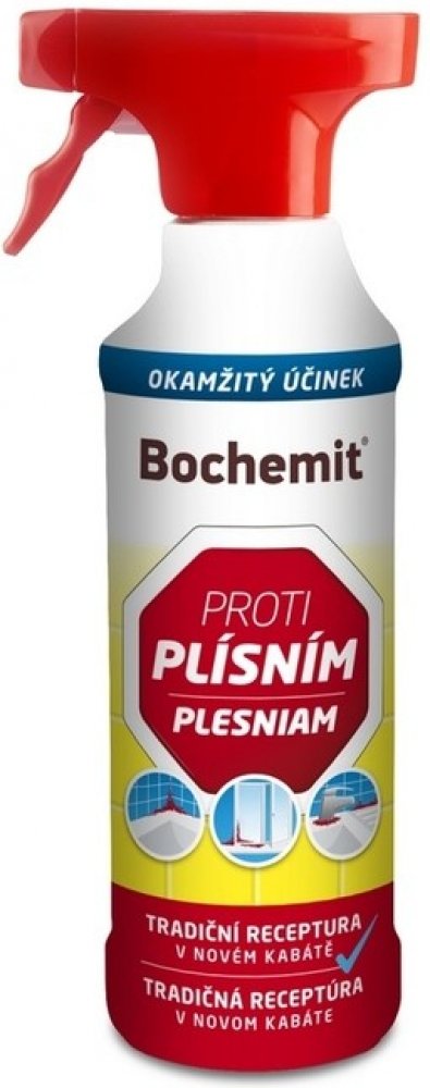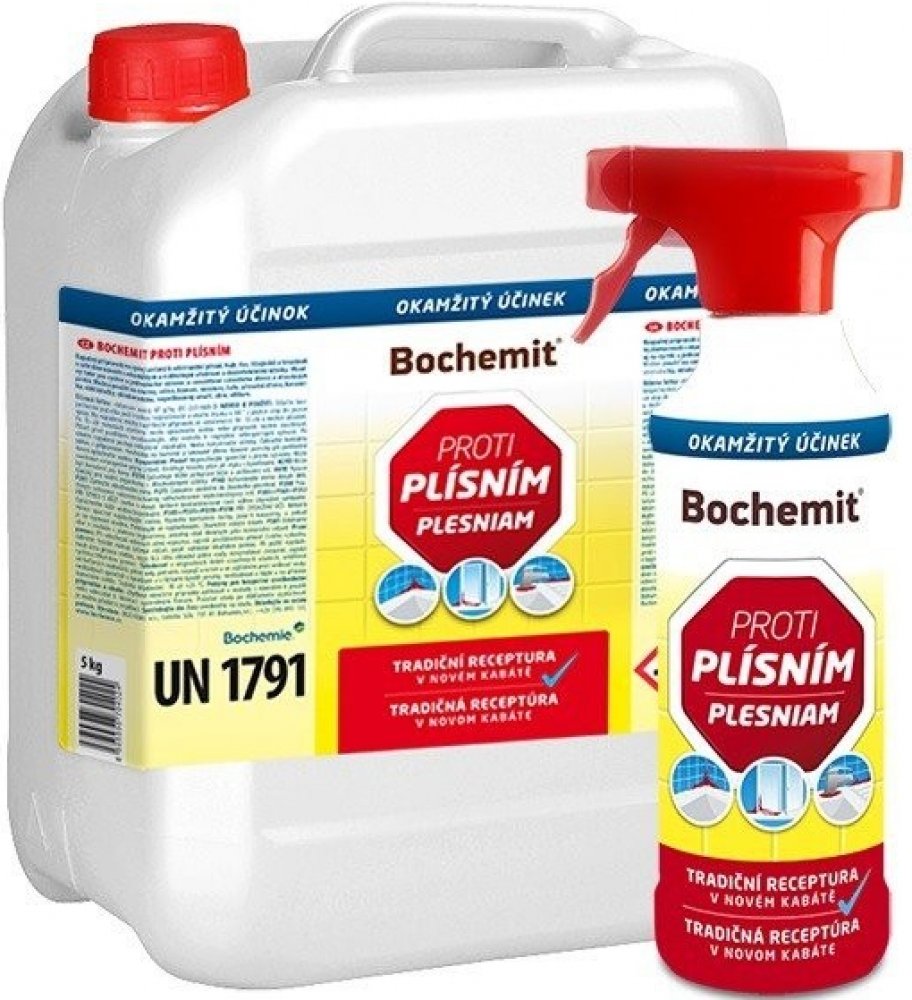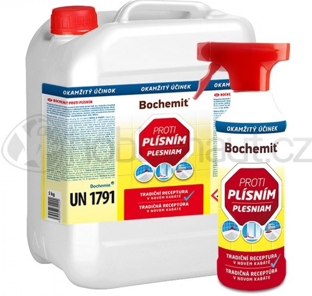 Bochemit Proti plísním je kapalný přípravek určený k rychlé a spolehlivé likvidaci plísní, řas, lišejníků, hub a kvasinek na různých površích. Lze jej použít v interiéru i exteriéru a je vhodný na dřevo, omítky, zdivo, beton, kámen, keramiku i další savé materiály. Po aplikaci poskytuje okamžitý účinek, viditelně čistí biologicky napadené plochy a zajišťuje jejich hygienickou obnovu.