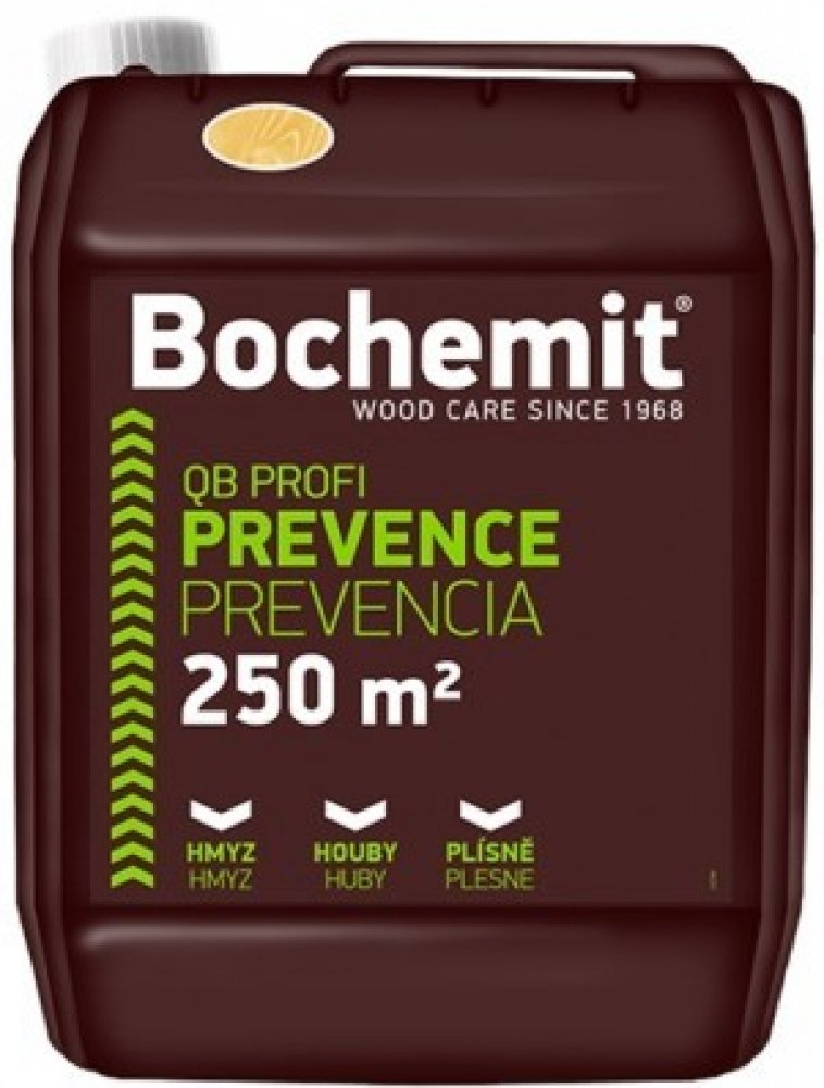Bochemit QB Profi je koncentrovaný kapalný fungicidní a insekticidní přípravek pro dlouhodobou preventivní ochranu dřeva proti plísním, dřevokaznému hmyzu a houbám. Na ochranu dřeva v interiéru (střešní konstrukce, podlahy) i exteriéru (střešní podbití, pergoly, ploty). Výrobek po aplikaci vsakuje do dřeva, na povrchu ošetřeného dřeva netvoří vrstvu, ošetřené dřev...