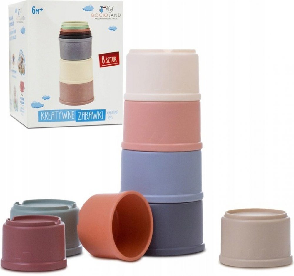 Sada se skládá z 8 různých pastelových šálků. Koupání » Hračky nejen do vody » BocioLand - Plastové hrníčky do vody BocioLand, pastelové
