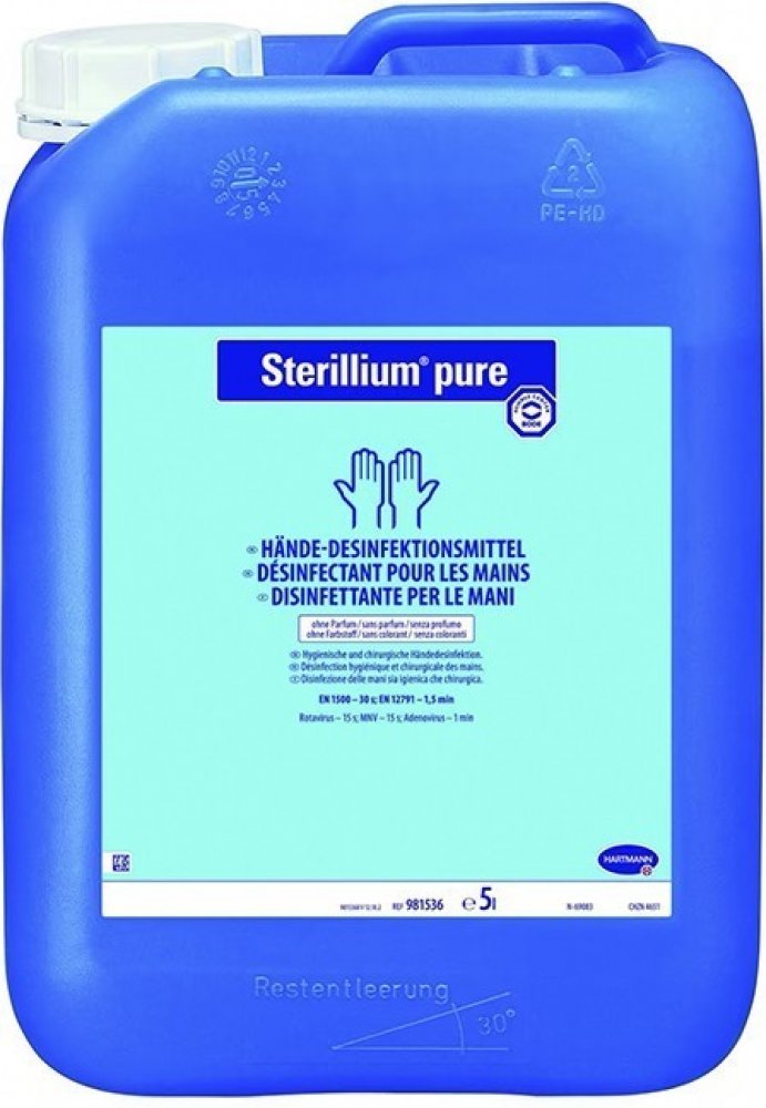 Sterillium® pure je vhodný pro hygienickou a chirurgickou dezinfekci rukou vtíráním. Sterillium pure je bez barviv, parfemace a je proto vhodné zejména pro uživatele s citlivou pokožkou, stejně jako pro astmatiky a atopiky.