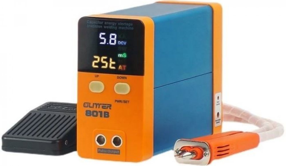 GLITTER 801B je kondenzátorová bodová svářečka pro bodové svařování akumulátorů do bateriových akupacků pomocí niklových plíšků. Ke stanici lze připojit svařovací pero nebo integrované rameno. Oprotiklasickým svářečkám s transformátorem nabízí nižší hmotnost i rozměry a větší energii pulsu. Svářečka umožňuje i svařování niklových pásků na hliníkový podklad.**Videopředstavení produktu**https://youtu.be/mVN-FF4EVlw**Specifikace:** Napájení: 15V/2A, přiložen adaptér 230VAC Doba nabíjení: 15-25min Výstupní svařovací napětí: 5-5,8V Výstupní svařovací proud: 500-2000A Max.svařovací výkon: 11,6kW Max.svařovací energie: 119J Doba pulsu: 0,1-10ms Rozsah nastavení svařovacího výkonu: 0-99tRežim svařování: AT/MT Doba regenerace: 20-50ms Tloušťka niklových pásků: 0,05-0,2mm Velikost: 120x65x180mmHmotnost: 2,5kg **Obsah balení:** -svářečka GLITTER 801H - 2x svařovací pero - ovládací pedál - svařovací rameno s hroty - 4x náhradní hroty - 20x niklové plíšky 0,15x8x100mm - 20x niklové plíšky 0,15x10x100mm - vzorek Al-Ni spoje
