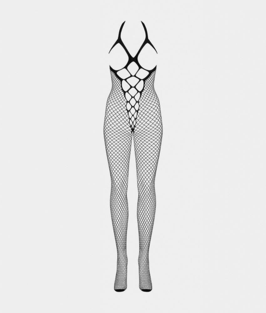 Podmanivý bodystocking N106 Obsessive vyrobené z elastické ažurové síťoviny. Jednoduchý střih je neobyčejně svůdný a pro tento model charakteristický. Velká oka typu kabaretka zdobí ústřední část modelu a svůdně zvýrazňují poprsí, břicho a záda. Zavazování za krkem a na zádech umožňuje dokonalé přizpůsobení se tělu. V rozkroku pikantní průstřih.