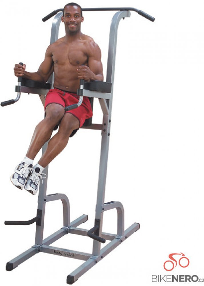 Power Tower Body-Solid GKR82 je užitečný pomocník pro posilování vlastní hmotností. Na této multifunkční hrazdě lze procvičovat prsní svalstvo a tricepsy na horizontálních madlech, ramena a celé paže na dlouhé horní hrazdě a břišní svalstvo při použití zádové opěrky. Na dolních madlech lze cvičit klasické kliky s variabilním úchopem. Hrazda je v mírném náklonu 10°, což dělá cvičení intenzivnějším, především při cvičení břišního svalstva. Zároveň při cvicích s využitím opěry zad se lze lépe zapřít, než na hrazdě beze sklonu. Nášlapné plošiny jsou vybaveny protiskluzovým povrchem pro maximální bezpečnost. Hrazda GKR82 se silnou ocelovou konstrukcí je opatřena kvalitním nátěrem, který odolává oděrům.