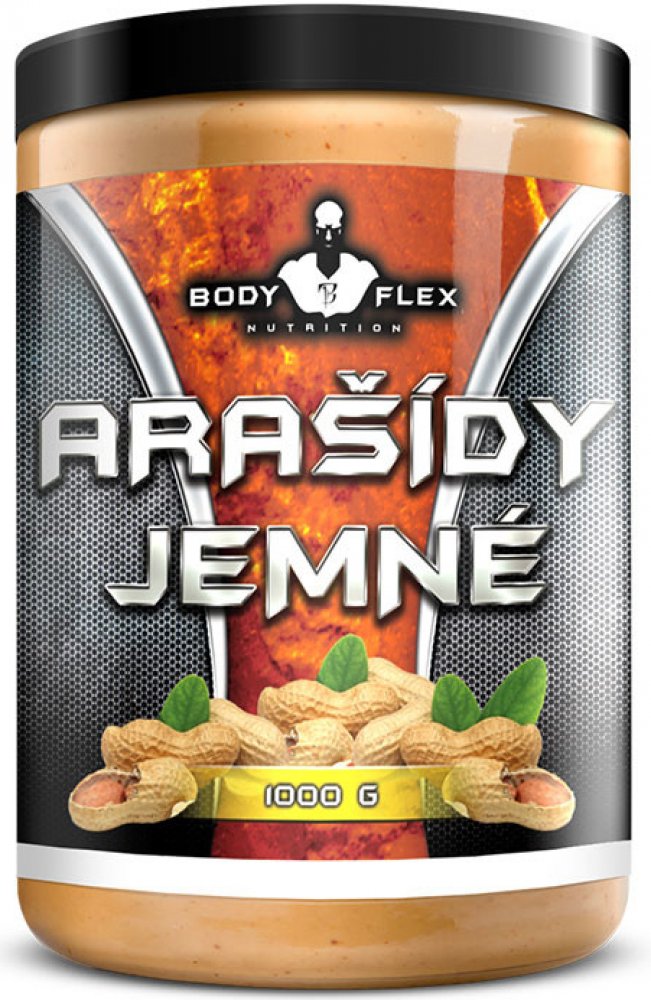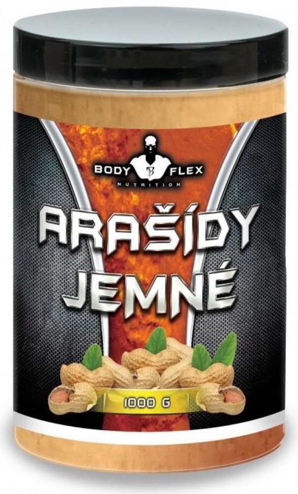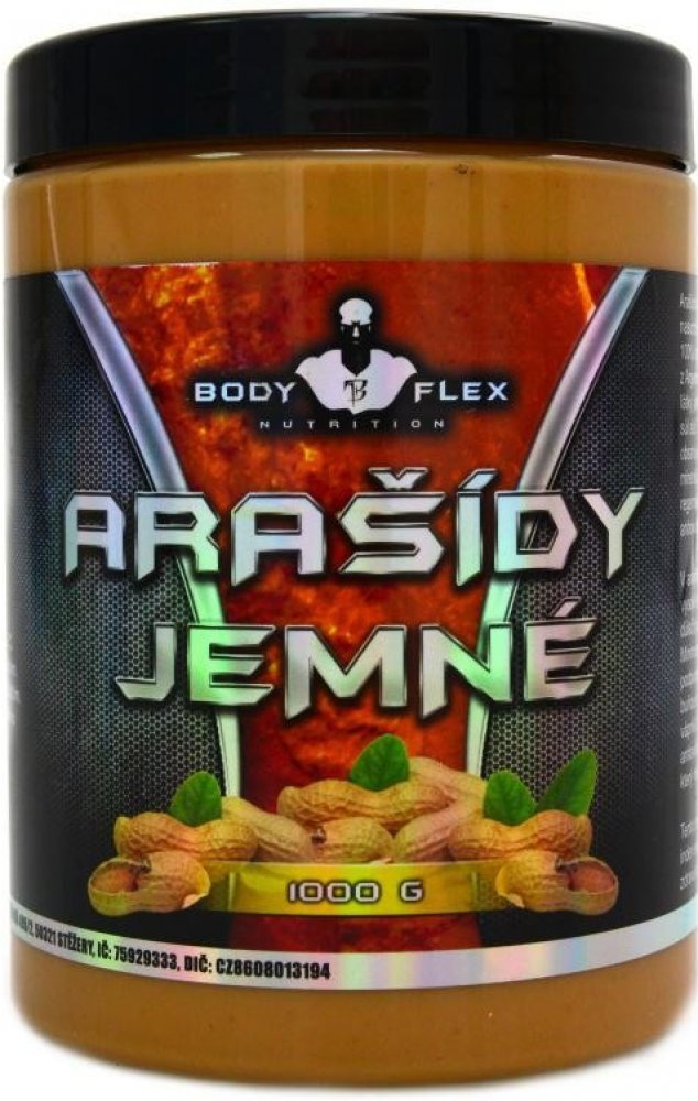Arašídový jemný krém je vyroben z nasucho pražených (bez použití oleje) 100% arašídů prvotřídní kvality původem z Argentiny. Neobsahuje žádné přidané látky jako jsou palmový olej, barviva, cukr, sůl atd. Tento produkt je přírodní a obsahuje významné množství vitamínů a minerálů, které lidské tělo potřebuje pro regeneraci, svalový růst, hubnutí či antioxidační působení. Obsahuje resveratrol, kterému jsou připisovány mnohé pozitivní účinky, od antioxidačních, přes vliv na hubnutí. Zároveň má příznivý vliv na kardiovaskulární systém a podílí se na prevenci rakoviny. V arašídech je zastoupeno poměrně vysoké množství hořčíku, který je velmi důležitý k funkci nervosvalového systému. Minimum sodíku a velké množství draslíku podporuje udržování vody ve svalové buňce a ne v podkoží. Dále obsahuje vápník, železo, fosfor, mangan, měď, antioxidačně působící selen se zinkem, který má navíc vliv na hladinu testosteronu. Z vitaminů obsahuje významné množství vitaminu E a kyseliny listové. Tento produkt také snižuje glykemický index sacharidů díky vysokému obsahu zdravého tuku a vlákniny. Přednosti produktu: 100% přírodní produkt bez přidaného cukru bez maltitolu bez palmového tuku bez lepku Nutriční informace 100 g energie 2456 kJ / 587 kcal bílkoviny 24,4 g sacharidy 21,3 g z toho cukry 4,9 g tuky 49,7 g z toho nasycené mastné kyseliny 7,7 g sůl 0 g Vláknina 8,4 g Složení 100% Arašídy loupané (Argentina). Informace Olejovitá vrstva na potvrchu je přirozený jev. V chladu tuhne a tvoří krystaly. Před konzumací promíchejte. Skladujte na suchém, chladném místě mimo sluneční záření. Po otevření spotřebujte do 3 týdnů. Minimální trvanlivost: viz. obal. Vyrobeno v zařízení zpracovávající mléko, sóju, vejce, korýše, ořechy, arašídy, lepek a výrobky z nich. Výrobce: Bodyflex Fitness, Pokratická 188/22, 41201 Litoměřice