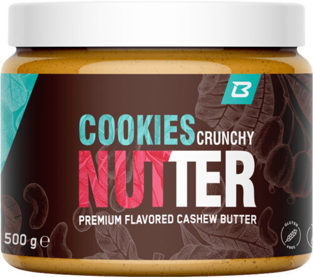 Ořechové máslo BodyWorld Cookies Crunchy Nutter představuje neodolatelně lahodné spojení 100% kešu ořechů s bílou čokoládou a rýžovými křupinkami obalenými v kvalitní hořké čokoládě. Kešu ořechy mají přirozeně sladkou chuť, díky čemuž patří k nejoblíbenějším oříškem. Cookies Crunchy Nutter je ideální volbou pro všechny milovníky sladké chuti ořechů a fanoušky aktivního životního stylu. Máslo neobsahuje lepek a palmový olej a je vyráběno z čerstvých ořechů.Výhodyzdravý přírodní zdroj bílkovin, sacharidů a tuků bez lepku, palmového oleje, emulgátorů a konzervantů vyráběné z nejkvalitnějších ořechů lahodná jemná chuťDoporučené dávkováníKonzumujte dle chuti a potřeby.Nutriční hodnoty BodyWorld Cookies Crunchy Nutter 500 g kešu-cookies-bílá čokoláda Velikost 1 dávky: 25 g Počet dávek v balení: 20 Nutriční hodnoty 1 dávka(25 g)100g RVH% * Energetická hodnota 602kJ / 144kcal2410kJ / 576kcal ** tuky 11g44g ** z toho nasycené 4g16g ** sacharidy 9g36g ** z toho cukry 4,8g19,2g ** bílkoviny 3,3g13,2g ** vláknina 0,5g2g ** * RVH - Referenční výživová hodnota. Referenční příjem průměrného dospělého (8400 kJ / 2000 kcal) ** RVH není stanoveno Složení Kešu ořechy, bílá čokoláda (obsahuje mléko), rýžové křupky v tmavé čokoládě, kokosový olej. Alergeny Obsahuje ořechy, mléko nebo výrobky z nich