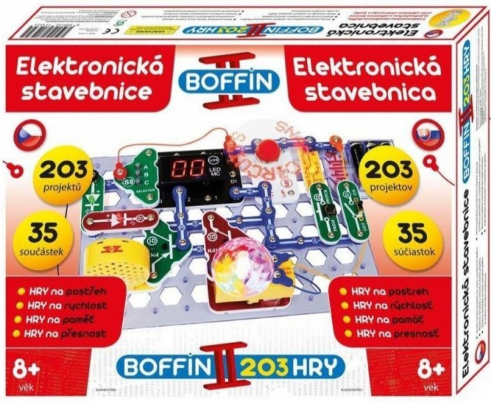Elektronická stavebnice Boffin II Hry obsahuje 35 součástek a nabízí zábavnou a hravou formou přes 200 nových projektů.