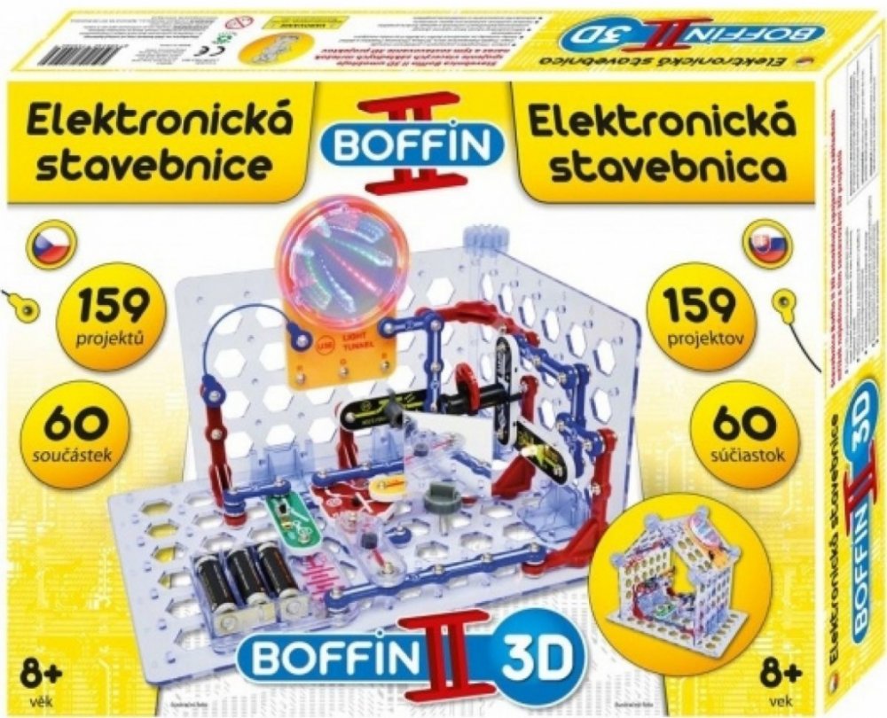 Boffin II 3D je elektronická stavebnice nabízející k sestavení 3D projekty s efekty, ke kterým potřebujete pět základních mřížek.