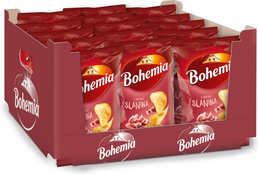 Oblíbený produkt z kategorie: Snack bar - slané pochutiny. Brambůrky a oříšky k televizi . Bohemia Chips slanina 60 g máme běžně skladem.