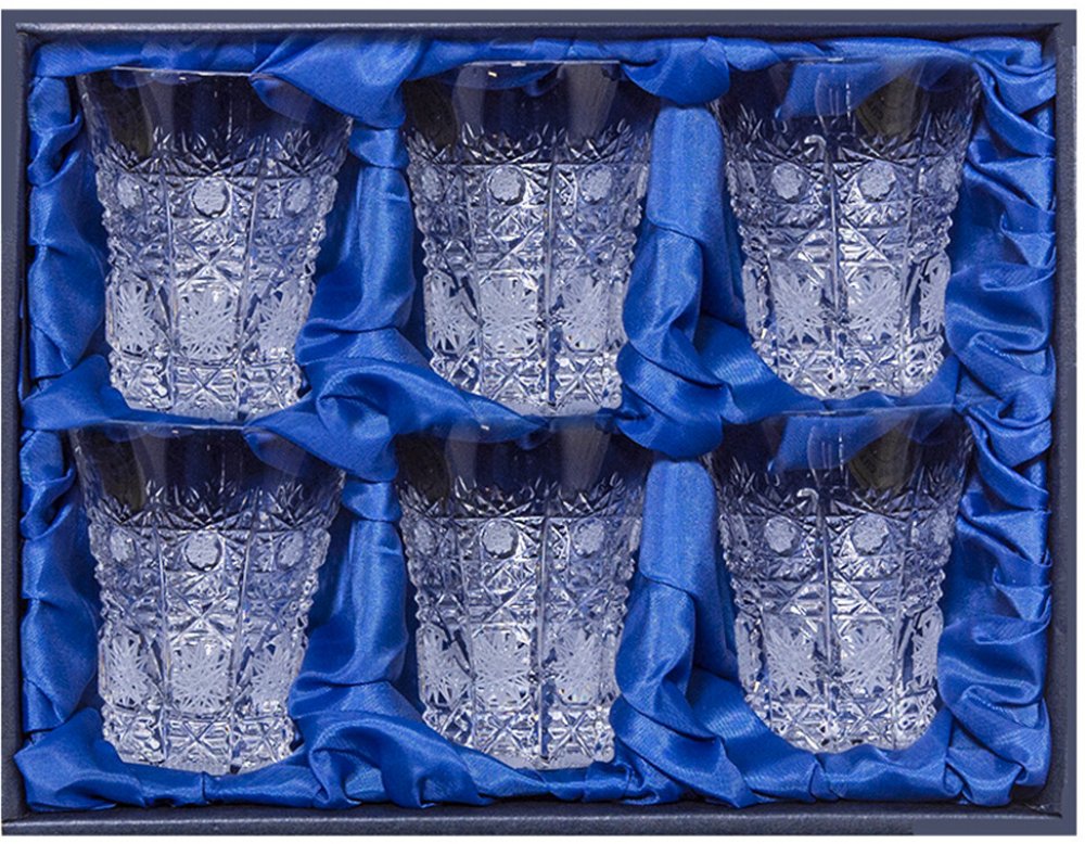 Sklenice panákovky z českého křišťálového skla. Baleno v modré dárkové krabici se saténem. Ručně broušeno českými mistry skláři klasickým brusem.