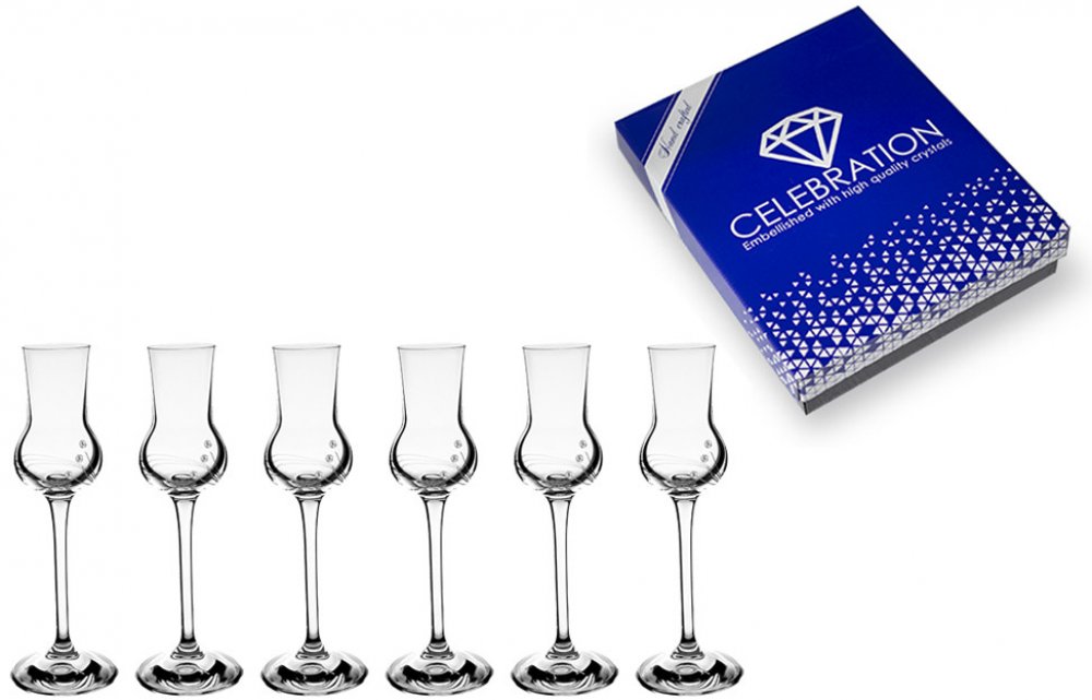 Sklenice na destiláty s brusem Paprsky vás nadchnou krásným moderním broušeným sklem, které je navíc ozdobeno krystaly Preciosa, nebo Swarovski. Precizní dekorační práce v průzračném křišťálovém skle ze skleniček dělají luxusní dar vhodný pro mimořádné příležitosti. Odlesky krystalů dodávají skleničkám punc originálního sklářského výrobku. Skleničky mají jemně zabroušený okraj, který je odolný pr...