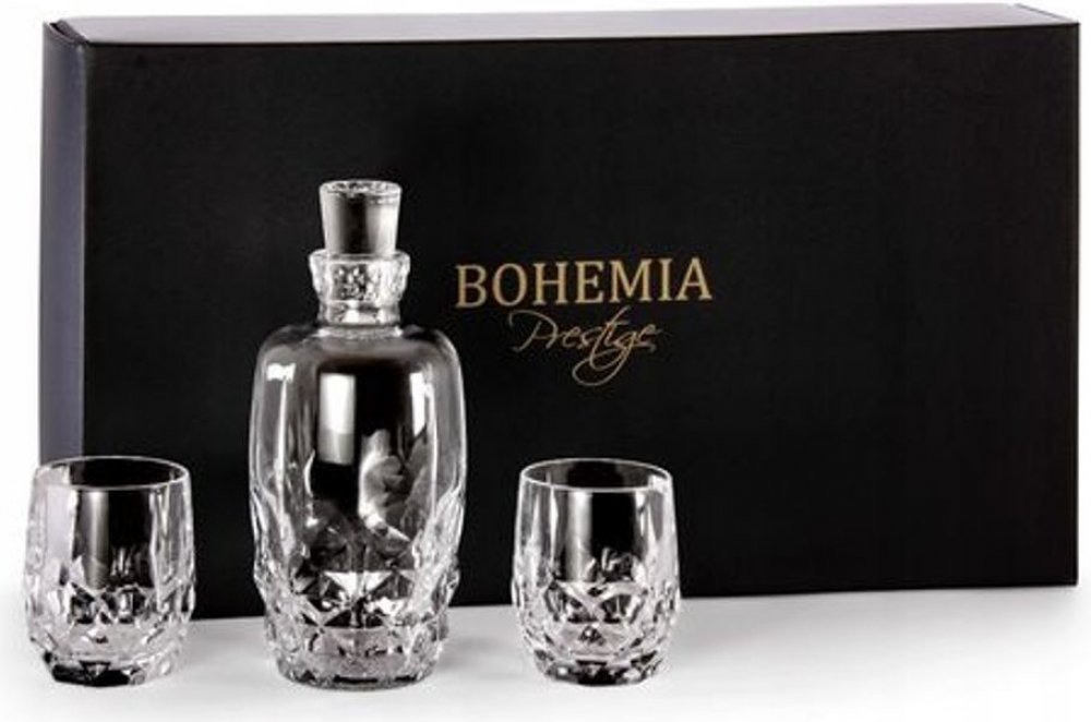 Sada whisky pro opravdové znalce – ideální jako dárek , protože je dodávána v elegantním, velmi exkluzivním černém balení se zlatým logem Bohemia Prestige . Je vyroben z kompletně křišťálového skla, které je nejen průhledné, velmi odolné a krásně vypadá na stole, ale je také šetrné k životnímu prostředí a 100% recyklovatelné. Výrobek lze mýt v myčce nádobí. Součástí výrobku je: karafa a 6 sklenic.