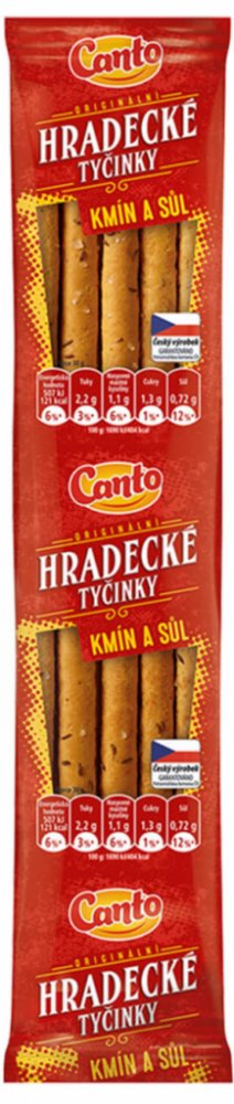 cena za 1 kg je 246.81 kčslaný snackSložení :PŠENIČNÁ mouka,margarin [částečně ztužené oleje (řepkový,slunečnicový,palmový vrrůzném poměru), voda, emulgátor(mono a diglyceridy mastných kyselin);regulátor kyselosti(kyselina citronová);konzervant(sorban draselný);barvivo(annato),aroma],droždí, jedlá sůl(max4%), škrob, SLADOVÁ moučka, cukr, kmín, sladká paprika,pepř, regulátor kyselosti(E524)