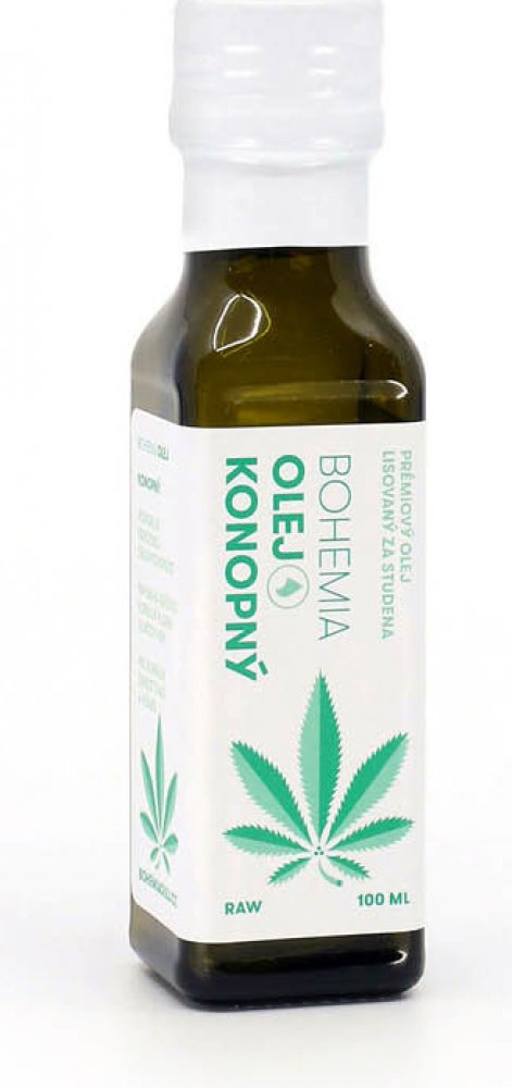 Bohemia Olej Konopný RAW 100ml Je sytě zelený se slámovo-oříškovou chutí i vůní. Je velmi bohatý na vitamin E a pyšní se ideálním poměrem omega 3 a 6. Bohemia Olej Konopný je vyrobený v RAW kvalitě ze semen registrovaných odrůd konopí, s povoleným obsahem THC 0,2%.