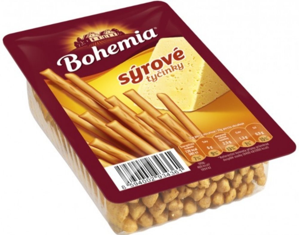 Složení: PŠENIČNÁ MOUKA (70%), slunečnicový olej, palmový olej, sušený SÝR (3%) (sbarvivem annato), sůl, SYROVÁTKA, sušené PODMÁSLÍ, cukr, ochucovadlo, barvivo(paprikový extrakt...