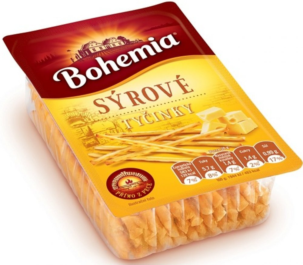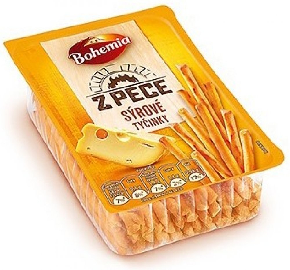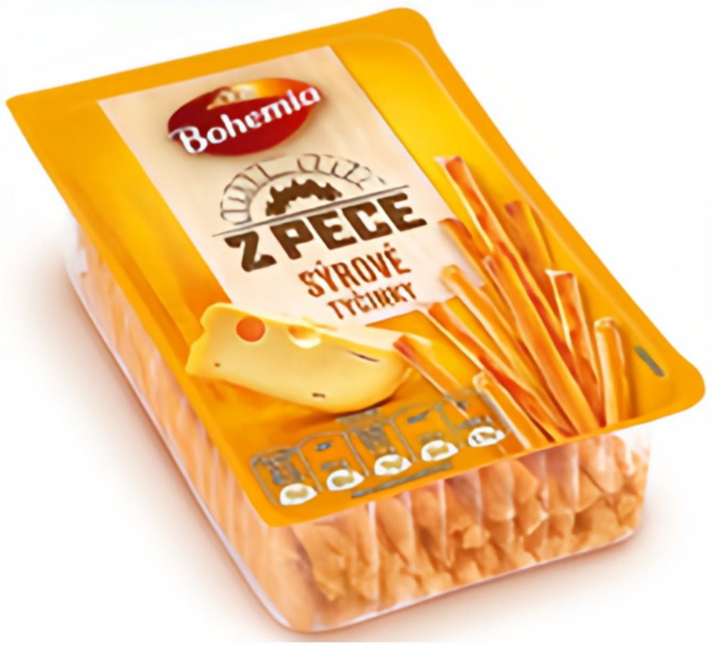 cena za 1 kg je 306.92 kčTrvanlivé tyčinky pečené se sýrovou příchutí.Složení :PŠENIČNÁ mouka (70 %), slunečnicový olej, palmový olej, sušený SÝR (3%) (s barvivem annato), sůl, SYROVÁTKA, sušené PODMÁSLÍ, cukr, ochucovadlo, barvivo (paprikový extrakt), koření, kvasnicový extrakt. Může obsahovat stopy sezamu.