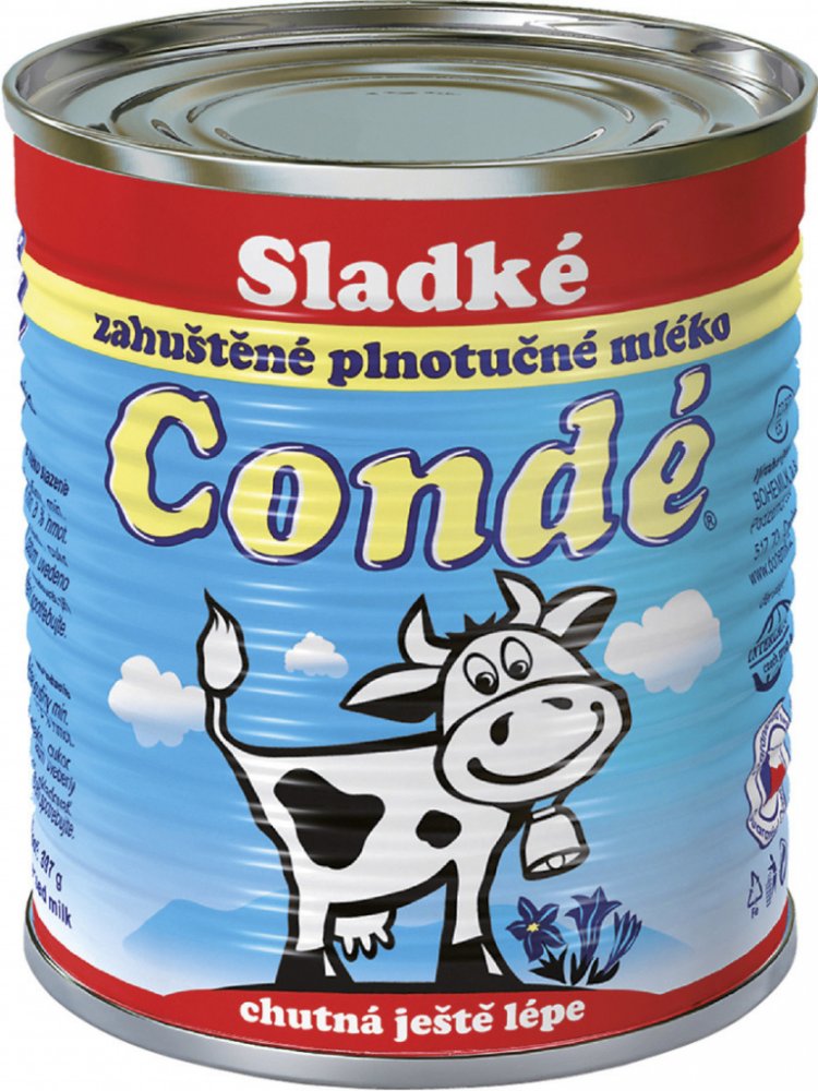 Mléko zahuštěné plnotučné slazené. Obsah tukuprosté mléčné sušiny. min. 20 % hm. Obsah tuku min. 8 % hm. Složení: mléko, cukr.