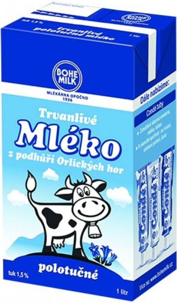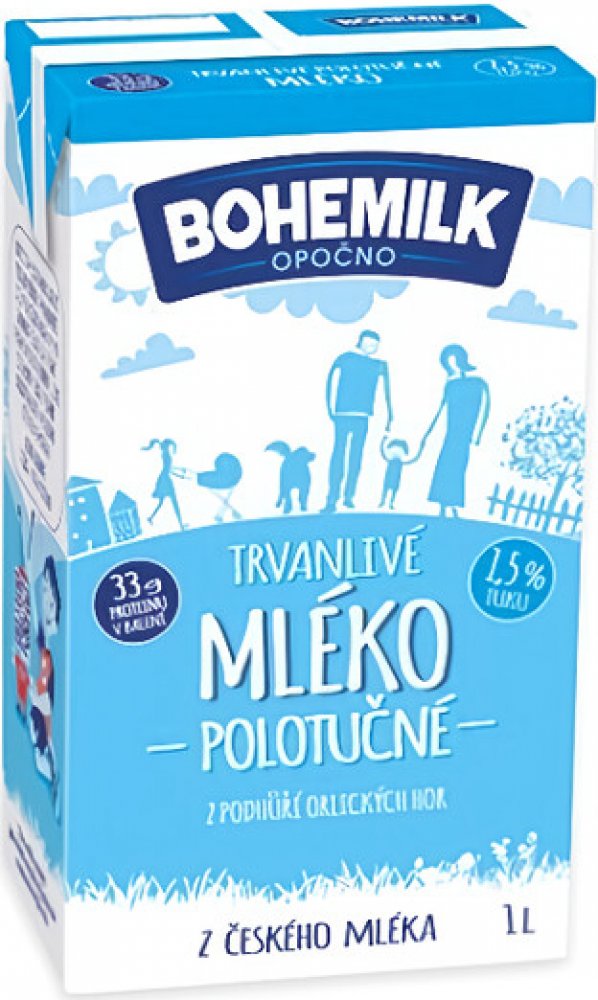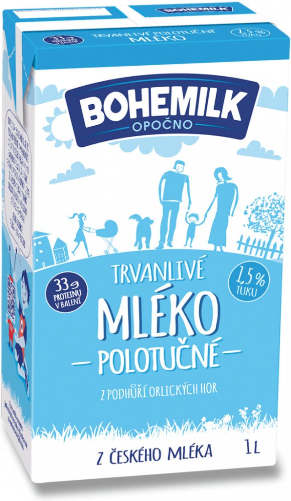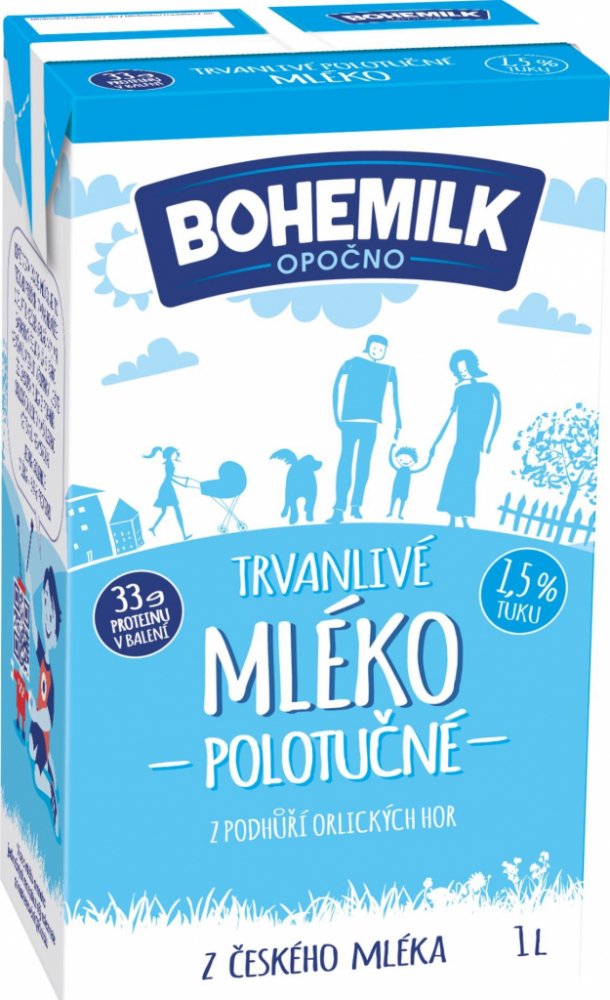 Bohemilk trvanlivé mléko polotučné 1,5% 1 l