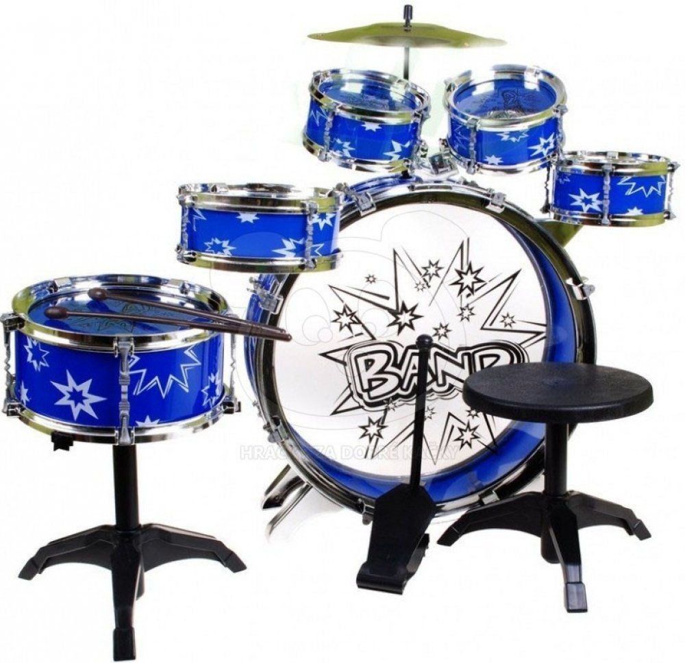 - velký buben s pedálem - střední buben - tři malé bubny - buben střední, stojící samostatně - dvě paličky - bicí talíř - stolička