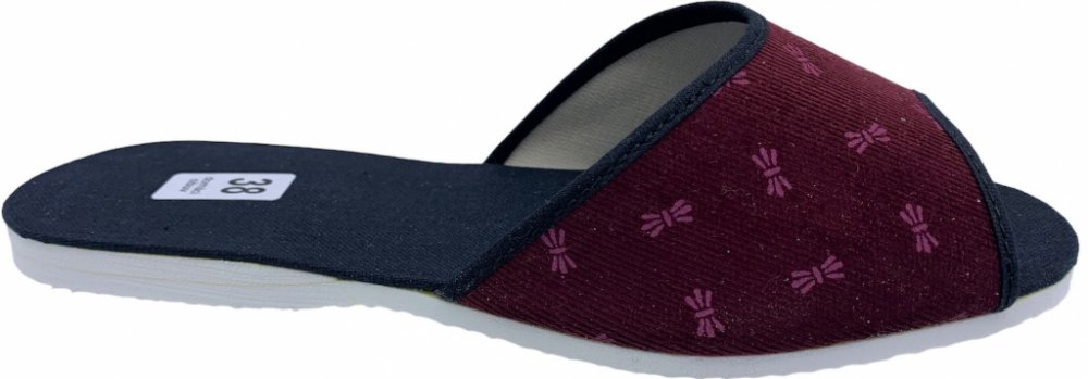 Svršek a stélka boty jsou vyrobeny z textilie. Vrchní část je dekorována květinami na bílém pozadí. Pantofle jsou velice odolné a při chůzi pohodlné.