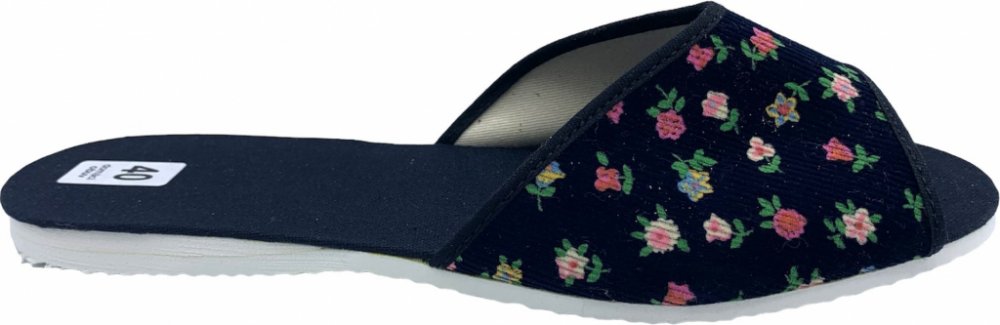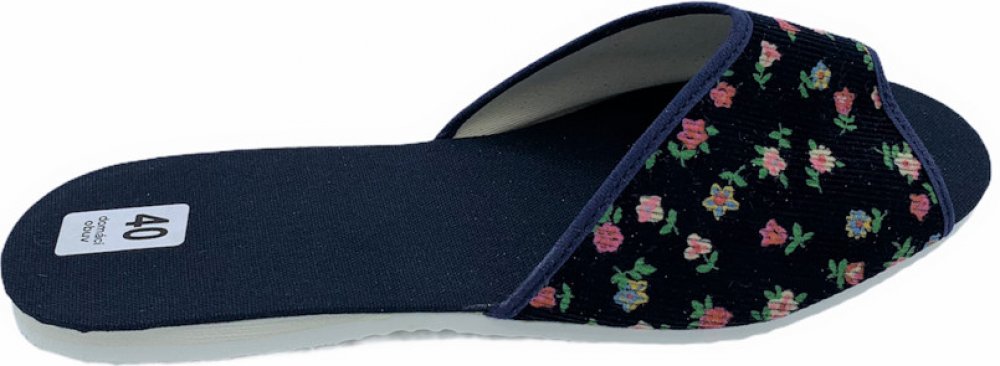Svršek a stélka boty jsou vyrobeny z textilie. Vrchní část je dekorována květinami. Pantofle jsou velice odolné a při chůzi pohodlné.