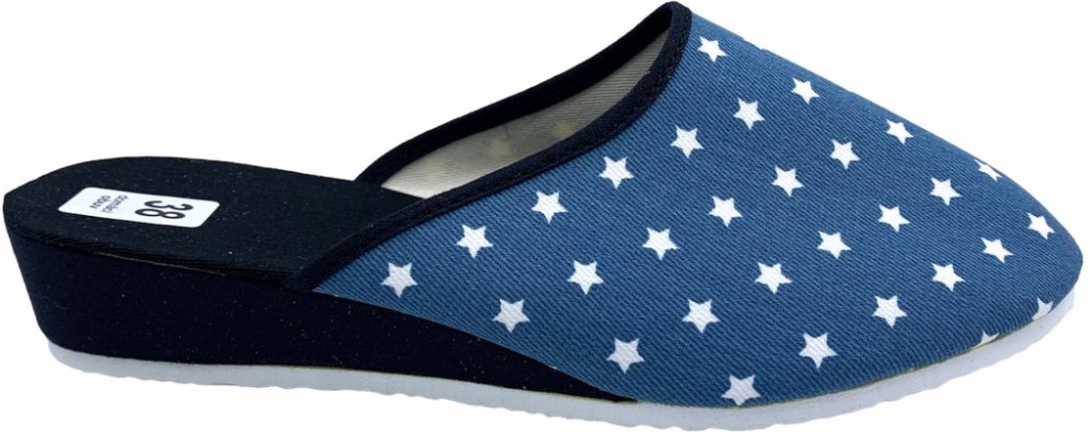 Materiálem svršku a stélky obuvi je textilie, v níž budete opravdu jako bavlnce. Vrchní nártová část je doplněna o zajímavý květinový vzor se zlatými doplňky. Vyzkoušejte si opravdu pohodlnou domácí obuv.