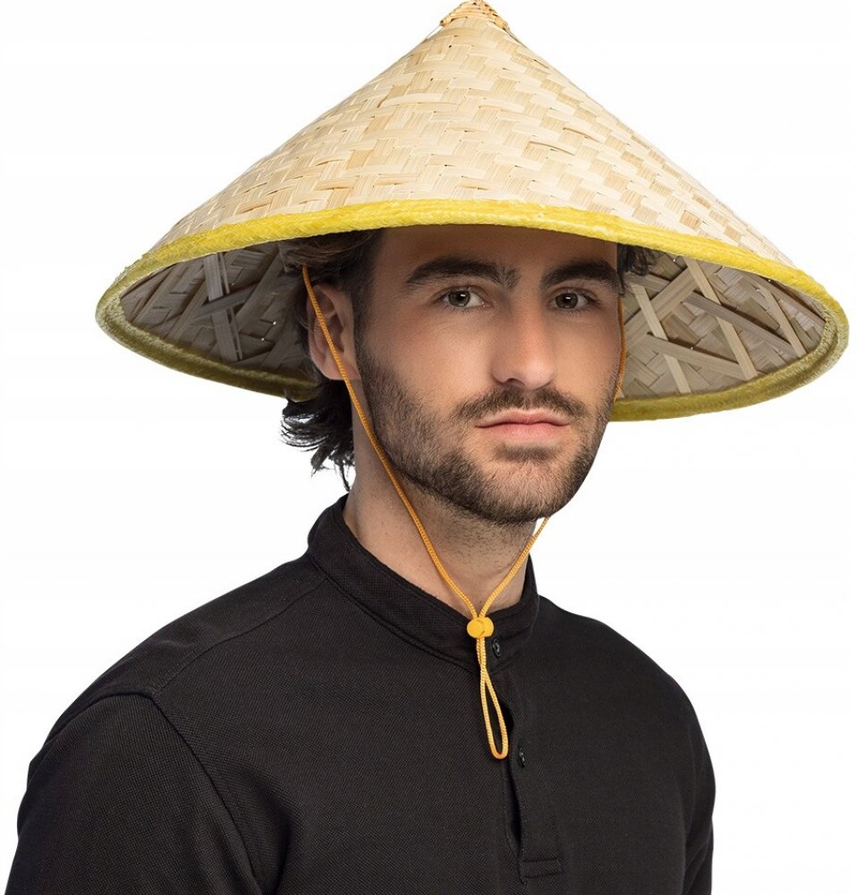 Klobouk v asijském stylu v přírodní barvě. Materiál: 50% sláma, 40% bambus, 10% polyester Průměr: 40 cm Obvod hlavy: 59 cm