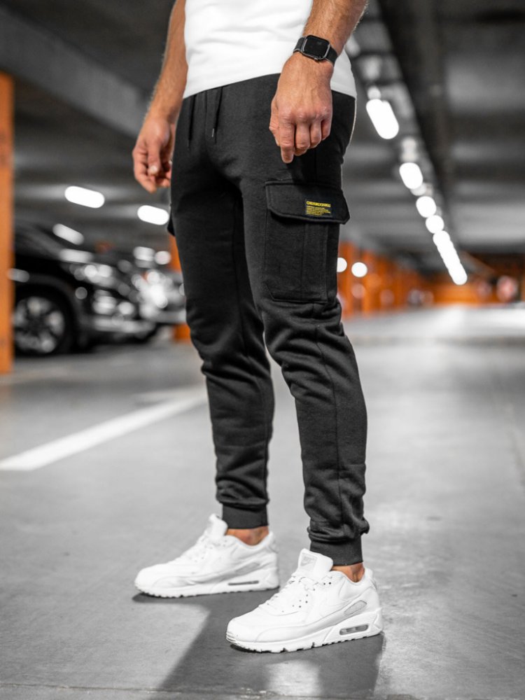Černé pánské teplákové kapsáčé Bolf JX8709A jsou nezbytnou součástí šatníku každého muže, který si cení pohodlí. Kalhoty jsou dostupné v tlumené barvě. Pás lze upravit silným lemem a stahovací šňůrkou, takže lze produkt přizpůsobit jakékoli mužské postavě. Na bocích jsou dvě praktické kapsy bez zapínání. Jsou perfektní pro uschovávání klíčů, peněženky nebo telefonu. Další drobné předměty lze uloži...