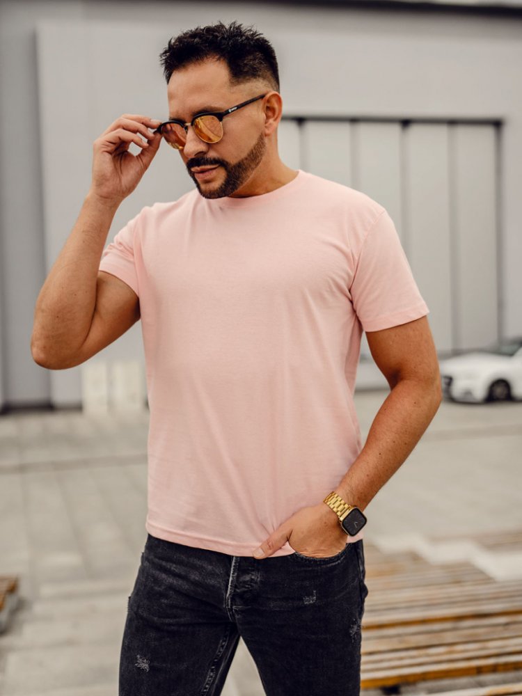 Bolf světle pánské bavlněné tričko bez potisku 192397A růžové