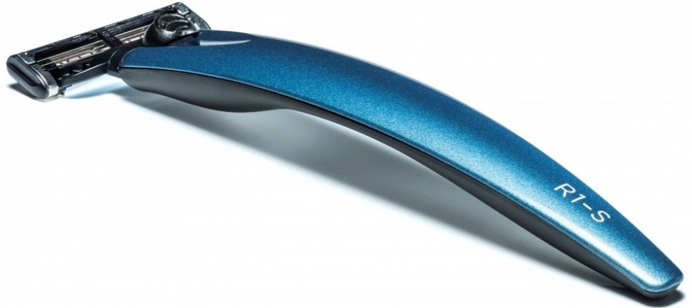 Moderní designový holicí strojek R1-S od značky Bolin Web na hlavice Gillette Mach3. Rukojeť je v energické modré metalíze. Spodní část rukojeti je protiskluzová, vyrobená z gumy s antibakteriálními vlastnostmi. Design je navržen s důrazem na pohodlné držení a jednoduché čistění. Dodáváno s luxusní dárkové krabičce. Vyrobeno v Anglii.