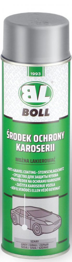 Prostředek na bázi syntetických pryskyřic, chránící před působením mechanických faktorů. Lze ho lakovat všemi způsoby. Ochranný prostředek na karoserie je prostředek na bázi syntetických pryskyřic. Vytváří pružnou vrstvu, která dokonale chrání před údery kamenů a působením mechanických vlivů. Používá se k ochraně prahů, nárazníků, spojlerů a jiných součástí karoserie automobilu. Výrobek vykazuje vysokou odolnost vůči stírání (odolnost před údery kameny). Lze ho lakovat všemi systémy laků. Způsob použití: Důkladně očistěte a odmastěte a následně osušte místo, které má být pokryto. Přiléhající plochy přikryjte papírem. Před použitím s nádobou dobře třeste po dobu cca 3 min. Během natírání držte nádobu ve vzdálenosti 15-20 cm od natíraného povrchu. Po použití otočte nádobu a rozstřikujte, až bude ventil prázdný. Optimální tloušťka vrstvy: cca 1 mm. Nestříkat na prvky výfukového systému, motoru, převodovky a soustavy zavěšení. Povrch lze lakovat po cca 3 hodinách. V případě vodou ředitelných laků - po cca 24 hodinách.