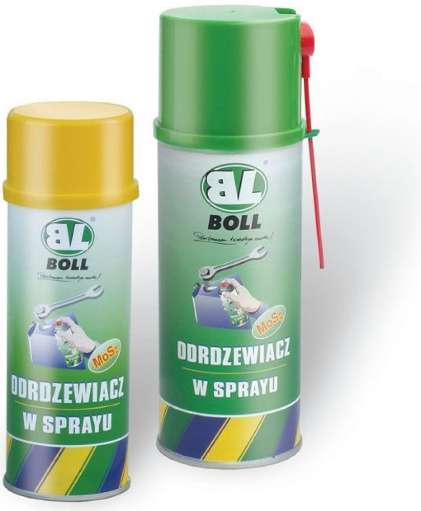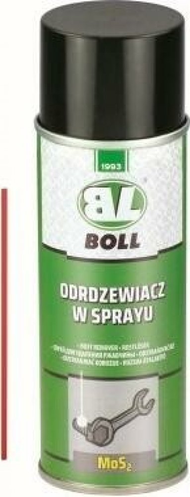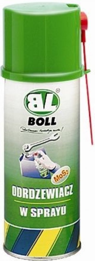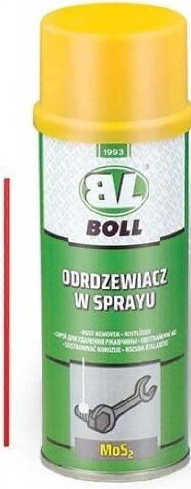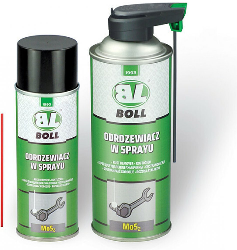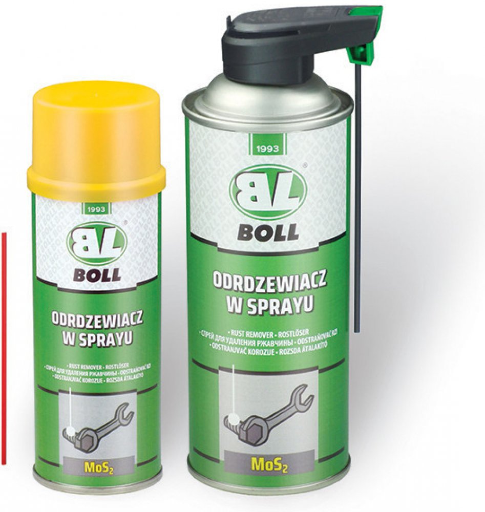BOLL Odstraňovač rzi s MoS2 ve spreji, 200mlOdstraňovač rzi ve spreji slouží k odstraňování oxidů vznikajících na povrchu kovu. V něm obsažený vysoce kvalitní olej s dokonalými penetračními vlastnostmi a přídavek MoS2 povrch namažou a trvale chrání před působením mechanických a atmosférických vlivů, např. korozí. Díky svým vlastnostem tento přípravek umožňuje odšroubování zarezlých šroubů a matek, svíček zapalování. Čistí a konzervuje řetězy, brzdové systémy a také ztěžuje opětovný vznik rzi. Působí rychle a efektivně.Způsob použití:Před použitím s nádobou dobře třeste po dobu cca 3 min. Naneste přípravek na zrezivělý povrch nebo součástku. Po 5–15 minutách od aplikace prostředku na součást zbavovanou rzi odstraňte rez a špínu, následně odšroubujte zrezlou součástku. Po použití otočte nádobu a rozstřikujte, až bude ventil prázdný.