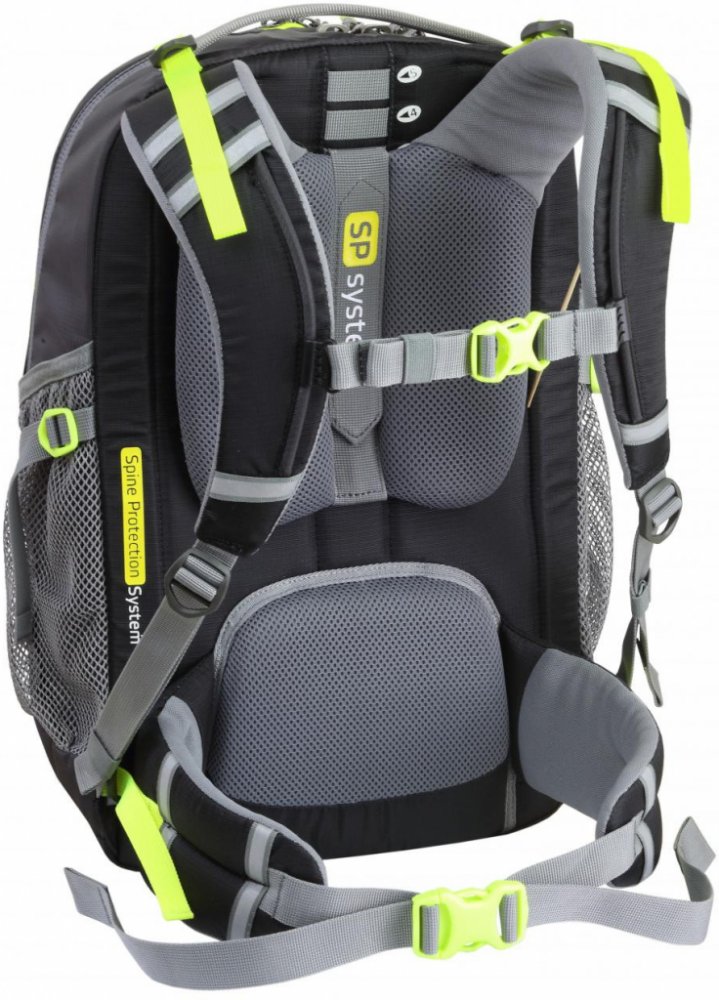 - plně výškově stavitelný zádový systém SP-system, který dovoluje precizní nastavení dle výšky dítěte a tím optimalizuje rozložení váhy batohu. Tento systém zároveň zaručuje zdravé nošení batohu a minimalizuje negativní dopady na páteř a její vývoj spojený s nošením těžkých břemen