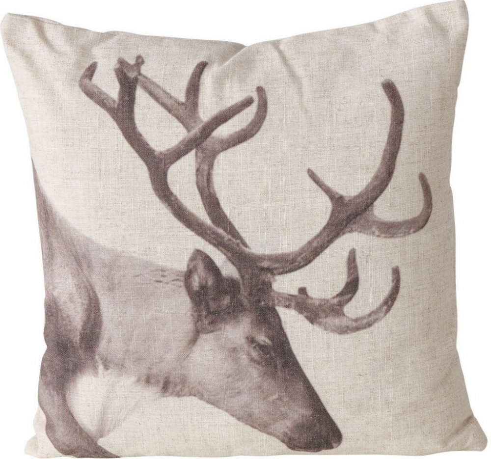 Stylový design: Dekorativní bavlněný polštář STAG o rozměrech 45 x 45 cm v béžové barvě je vynikajícím doplňkem do každého interiéru. Jeho unikátní vzor s jelením motivem přitahuje pozornost a dodává prostoru charakter.