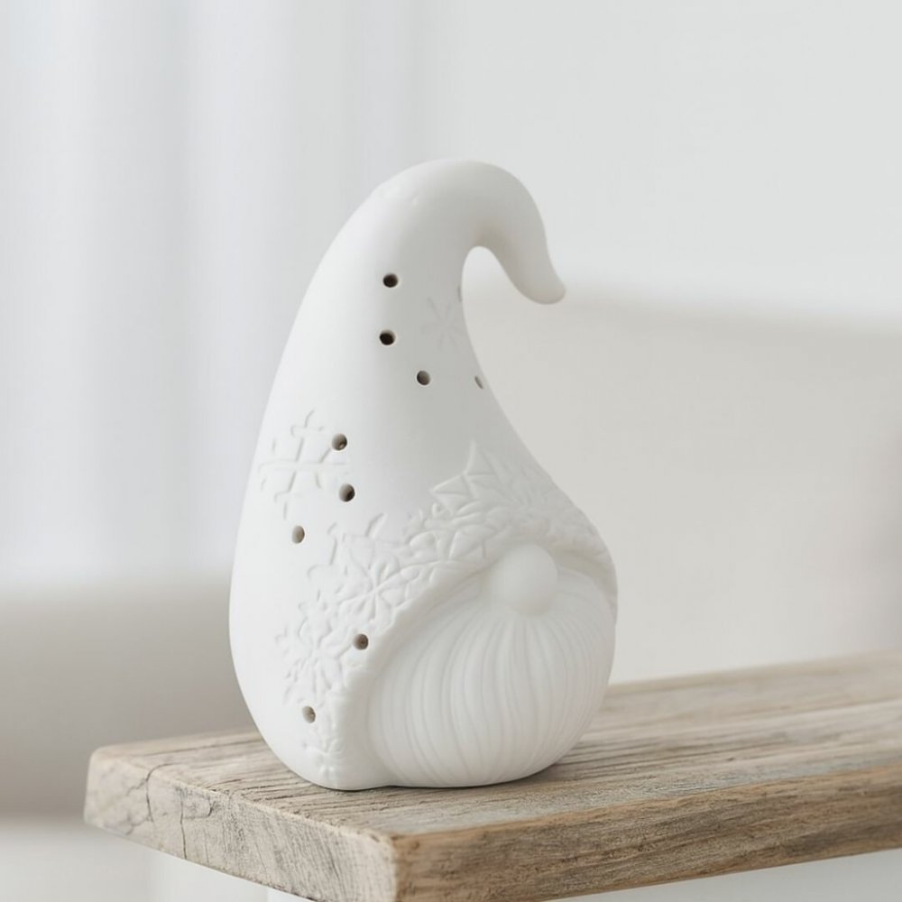 - Keramický skřítek v bílé barvě o výšce 14 cm je vkusnou zimní dekorací s jemným reliéfem sněhových vloček a výrazným plnovousem.