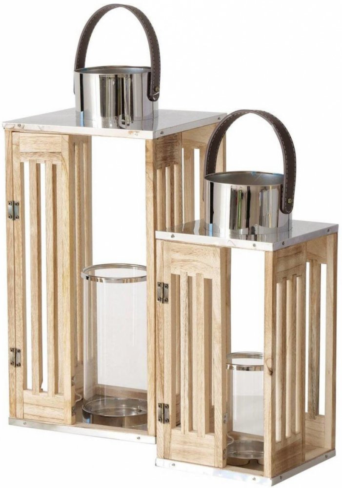 Dřevěné lampióny na svíčky - sada 2 luceren různých rozměrů, s nimiž vytvoříte zajímavý světelný efekt