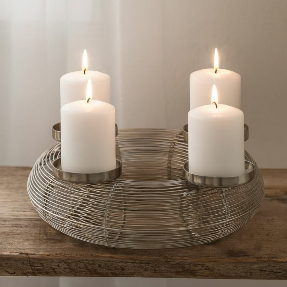 - Dopřejte si kouzlo adventu s naším elegantním stříbrným svícnem, který se skvěle hodí pro 4 válcové svíčky. Minimalistický design v kombinaci s jemným kovovým leskem vynikne v každém interiéru – ať už je moderní, nebo rustikální.