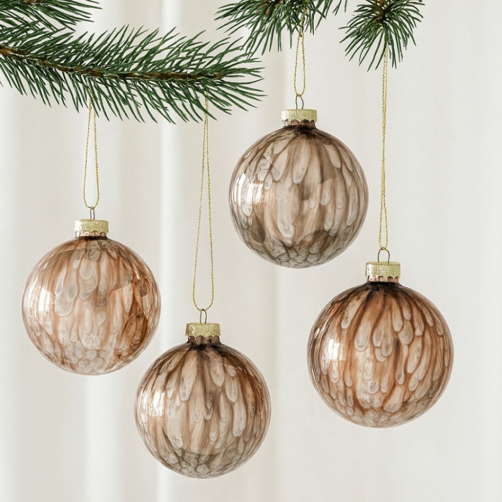 - Sada 4 elegantních skleněných vánočních ozdob v přírodních tónech s jedinečným kapkovitým vzorem.