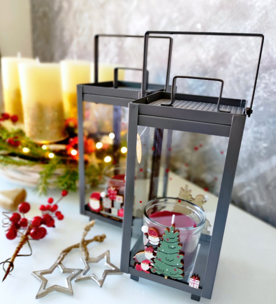 BoltzeXmas Vánoční lucerna skřítek Neposeda se stromečkem 23cm