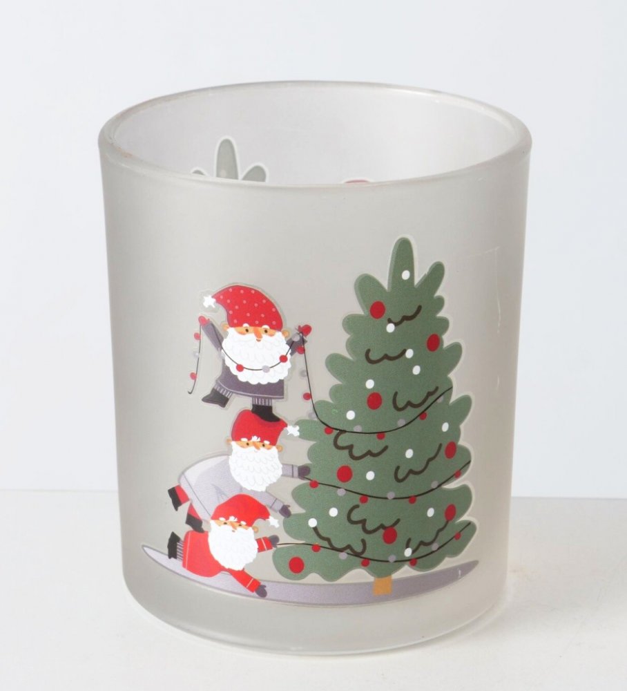 BoltzeXmas Vánoční skleněné lucerny skřítek Neposeda se stromečkem set 2ks