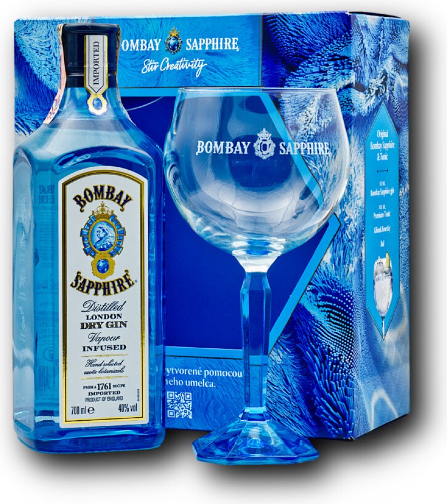 Bombay Sapphire Gin 40% 0,7 l (dárkové balení 1 sklenice)