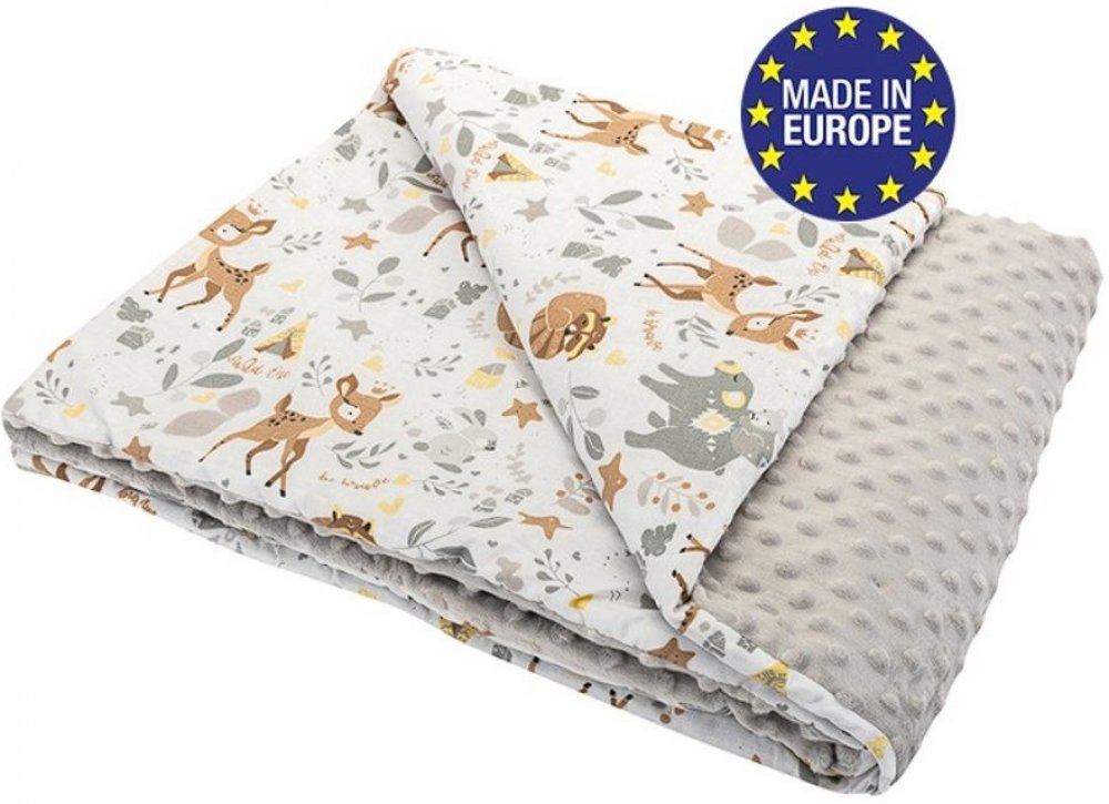 Dětská luxusní oboustranná deka vyrobena z jedné strany ze 100procent bavlny a z druhé z jemného, hřejivého a luxusního materiálu MINKY. Měkoučká deka je pro větší pohodlí s výplní z antialergického polyesterového vlákna.